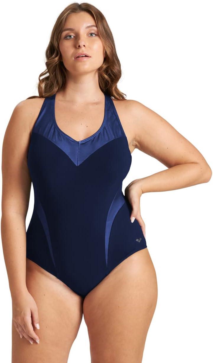 arena Bodylift Women’s Spikes Bra Plus Size One Piece Swimsuit Swim Pro Back UV Protection Tummy Control Ladies Bathing Suit(Navy-bright Blue)