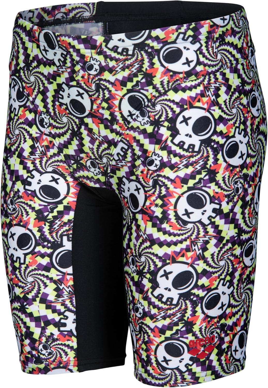 Arena Boys Arena Boys’ Performance Fun Skulls Youth Athletic Racing Pool Training Swim Jammers(Multi Black/Black)