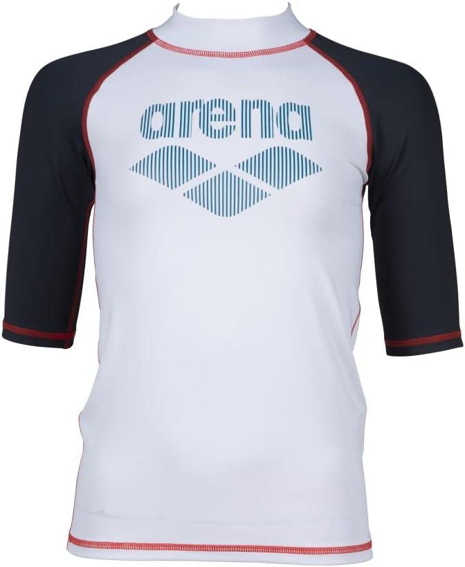 ARENA Boys Short Sleeve Rash Vest Swim Shirt with Uv Sun Protetion(White/Ash Grey)