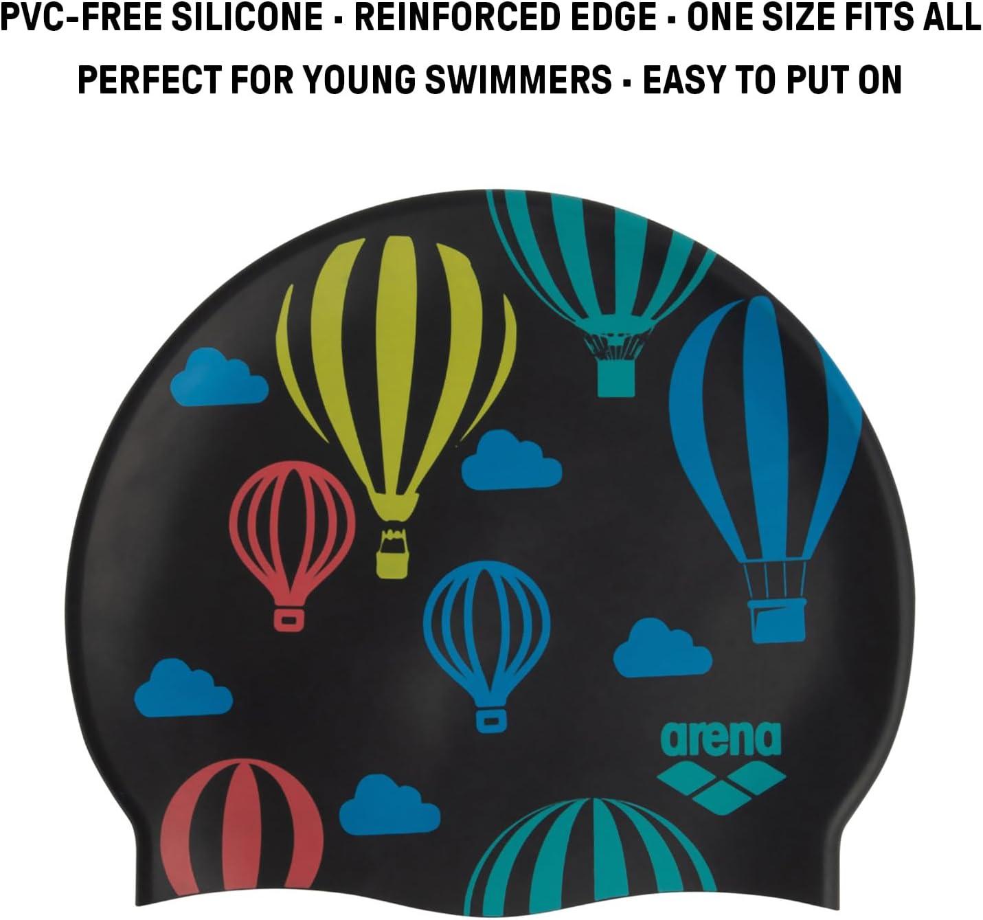 Arena Classic Junior Silicone Unisex Swim Cap for Girls and Boys Comfortable Durable Kids’ Pool Bathing Cap, One Size(Air Balloons)