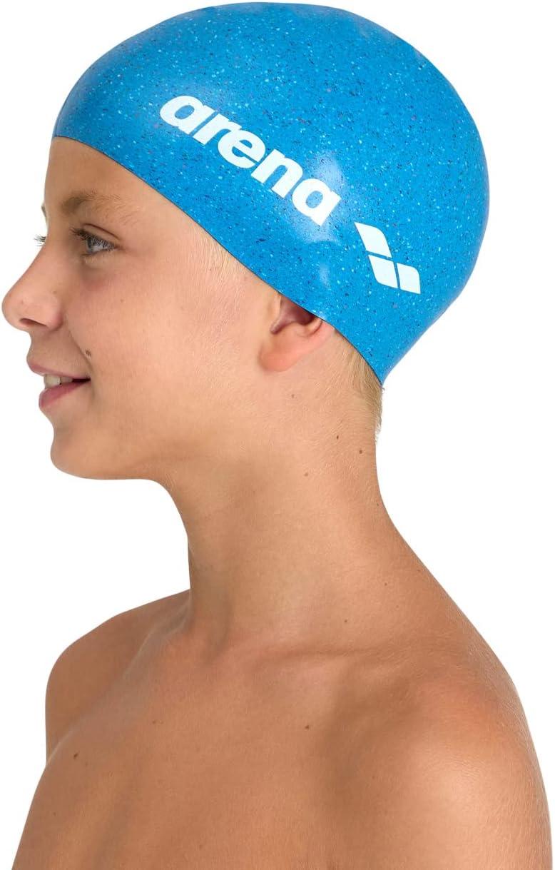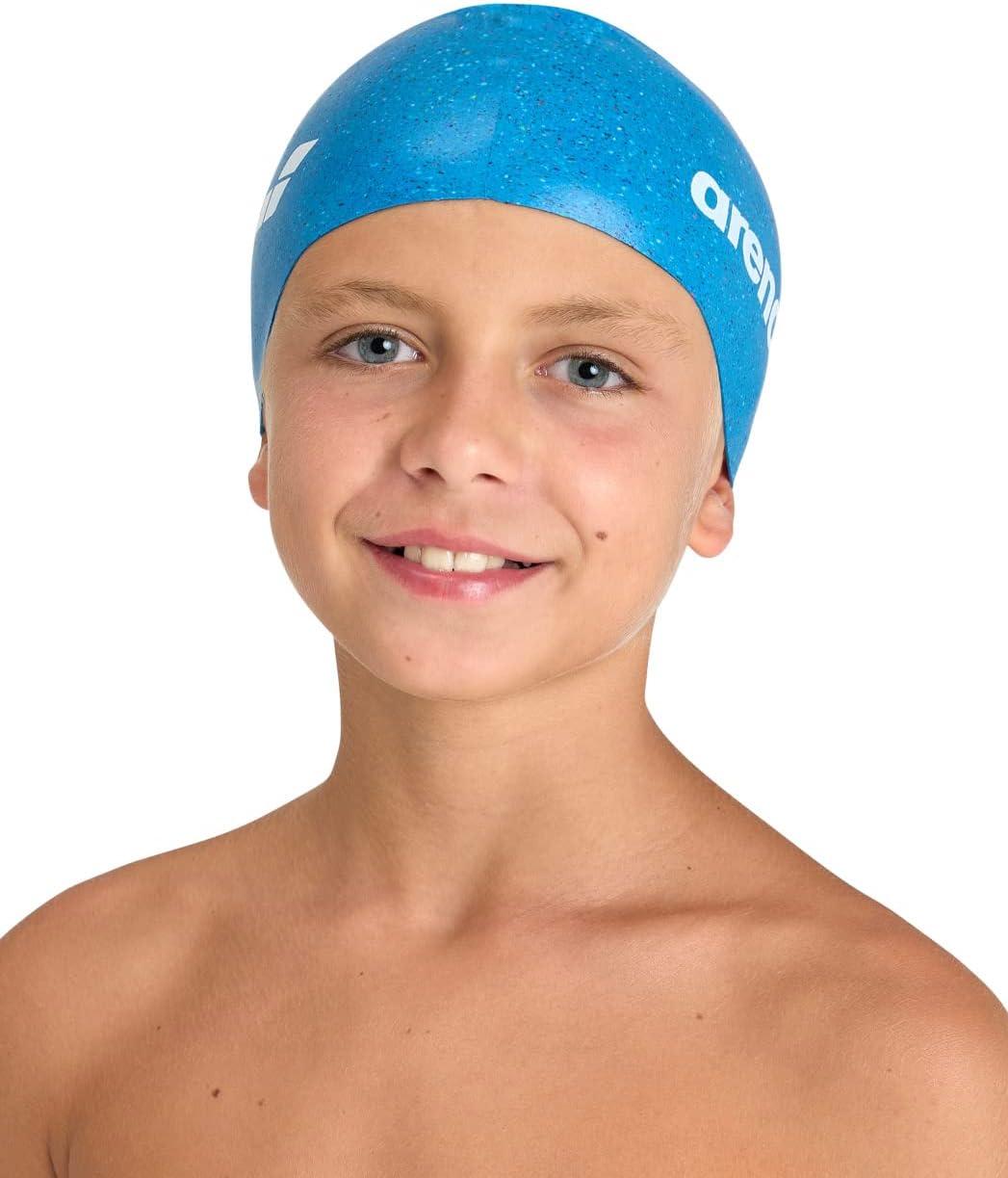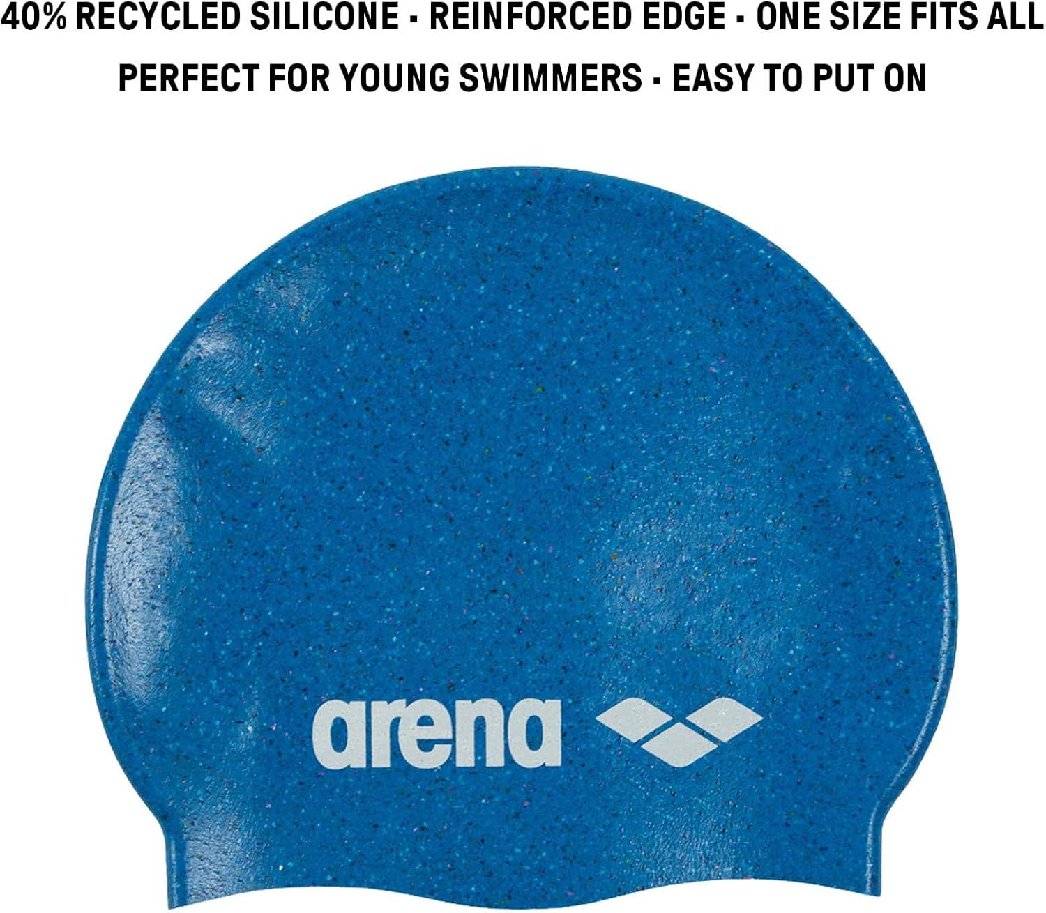 Arena Classic Junior Silicone Unisex Swim Cap for Girls and Boys Comfortable Durable Kids’ Pool Bathing Cap, One Size(Blue Multi Recycled)