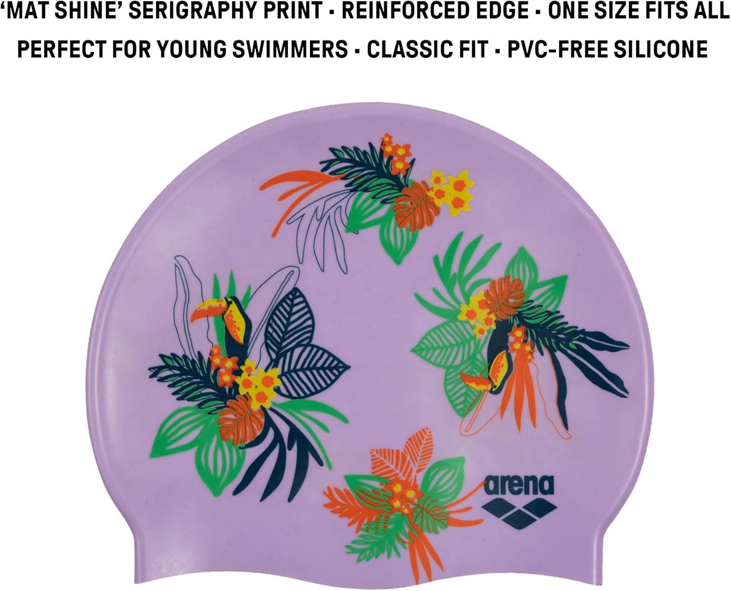 Arena Classic Junior Silicone Unisex Swim Cap for Girls and Boys Comfortable Durable Kids’ Pool Bathing Cap, One Size(Toucans)