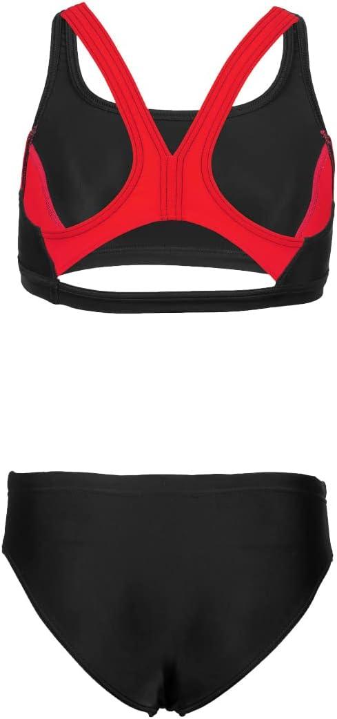 ARENA Feel Girls’ Junior Thrice Two-Piece Swimsuit Racer Back Top Waterfeel Comfortable Suit Pool or Beach, US Size 22, Black/Anguria/White