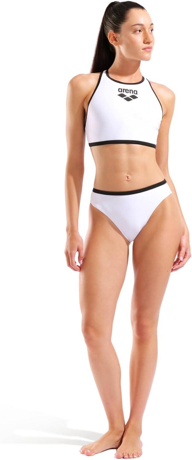ARENA Feel Women’s Solid Y-Line Back Bralette Two Piece Bikini Supportive Wide Straps Chlorine Saltwater Resistant Quick Drying UV Protection Ladies Bathing Suit, White/Black, US Size 32