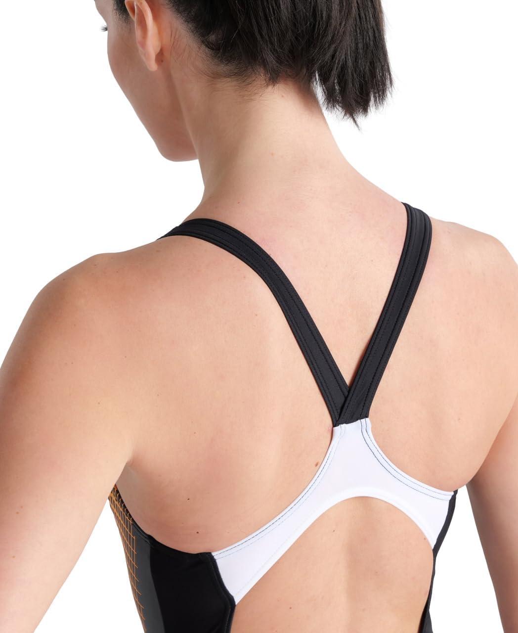 Arena Feel Women’s Threefold V Back Swimsuit Stretchy One Piece Stylish Bathing Suit(Black/Asphalt/White)