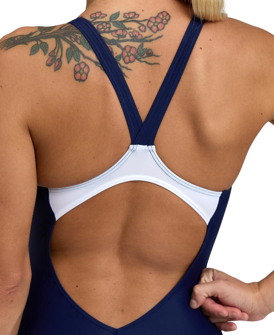 Arena Feel Women’s Threefold V Back Swimsuit Stretchy One Piece Stylish Bathing Suit(Navy/Neon Blue/White)