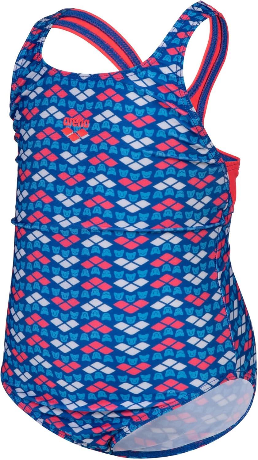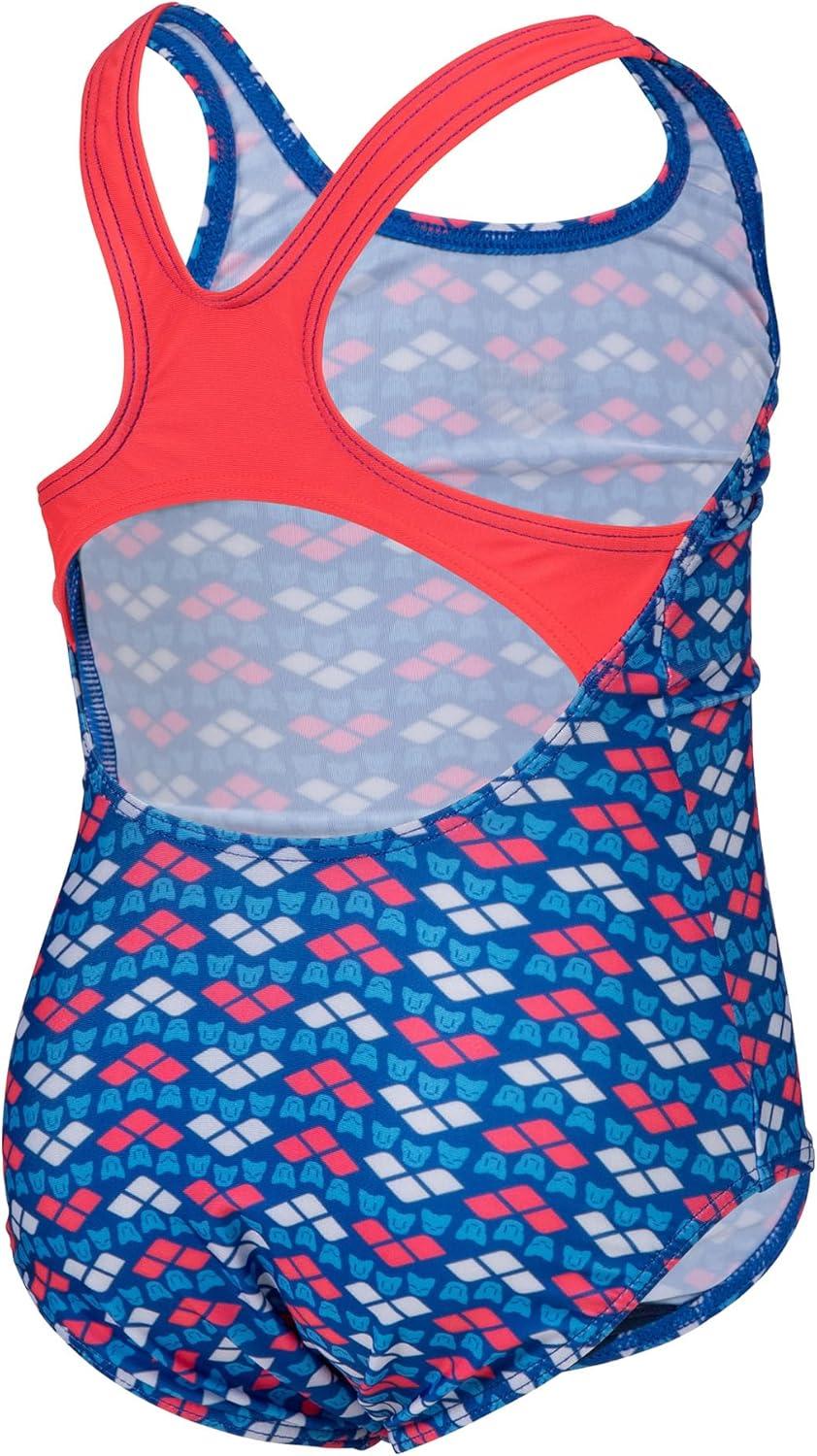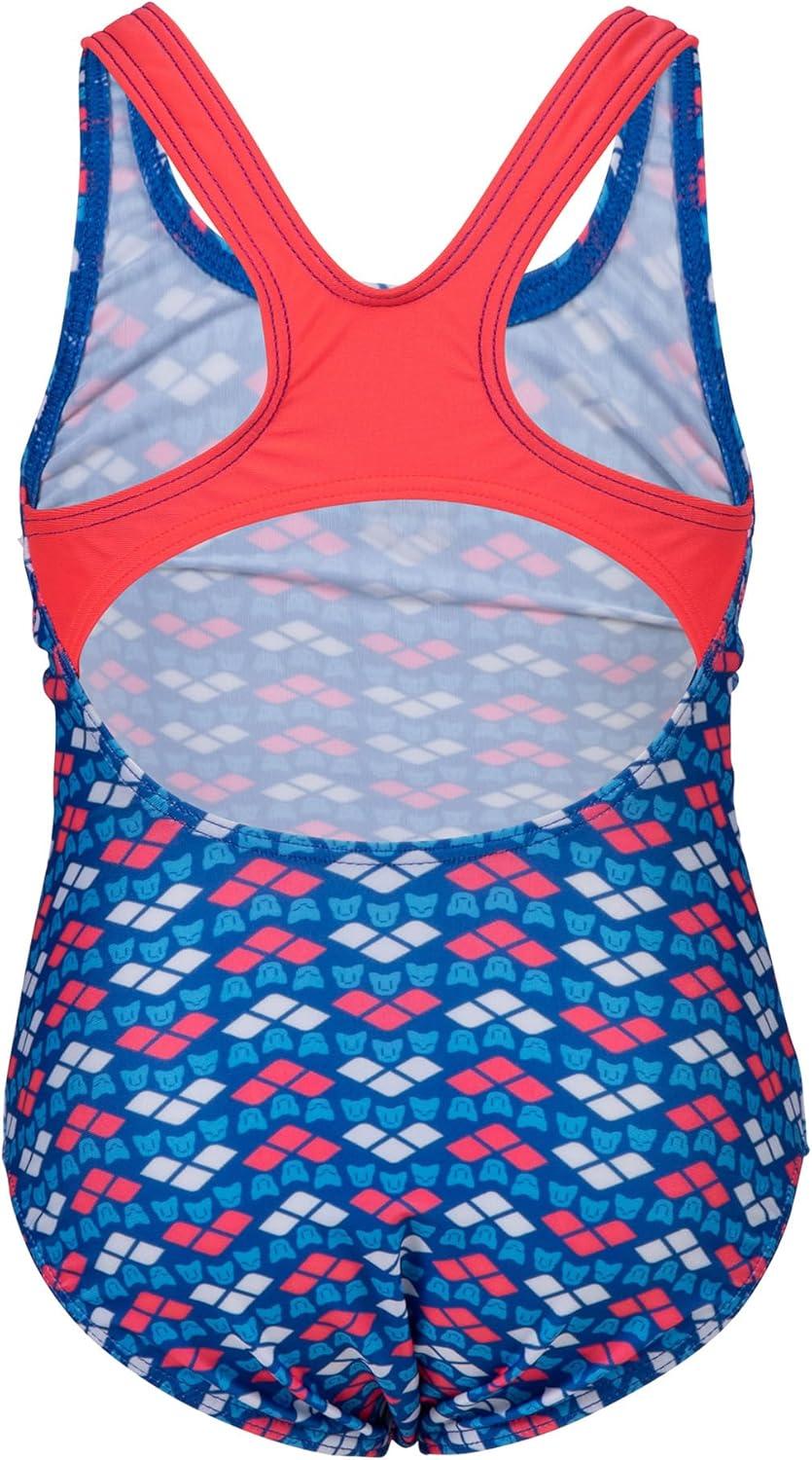 Arena Friends Girls’ Youth Swim Pro Back Swimsuit Comfortable One Piece Kids Suit Pool or Beach(Fluo Red/Multi)
