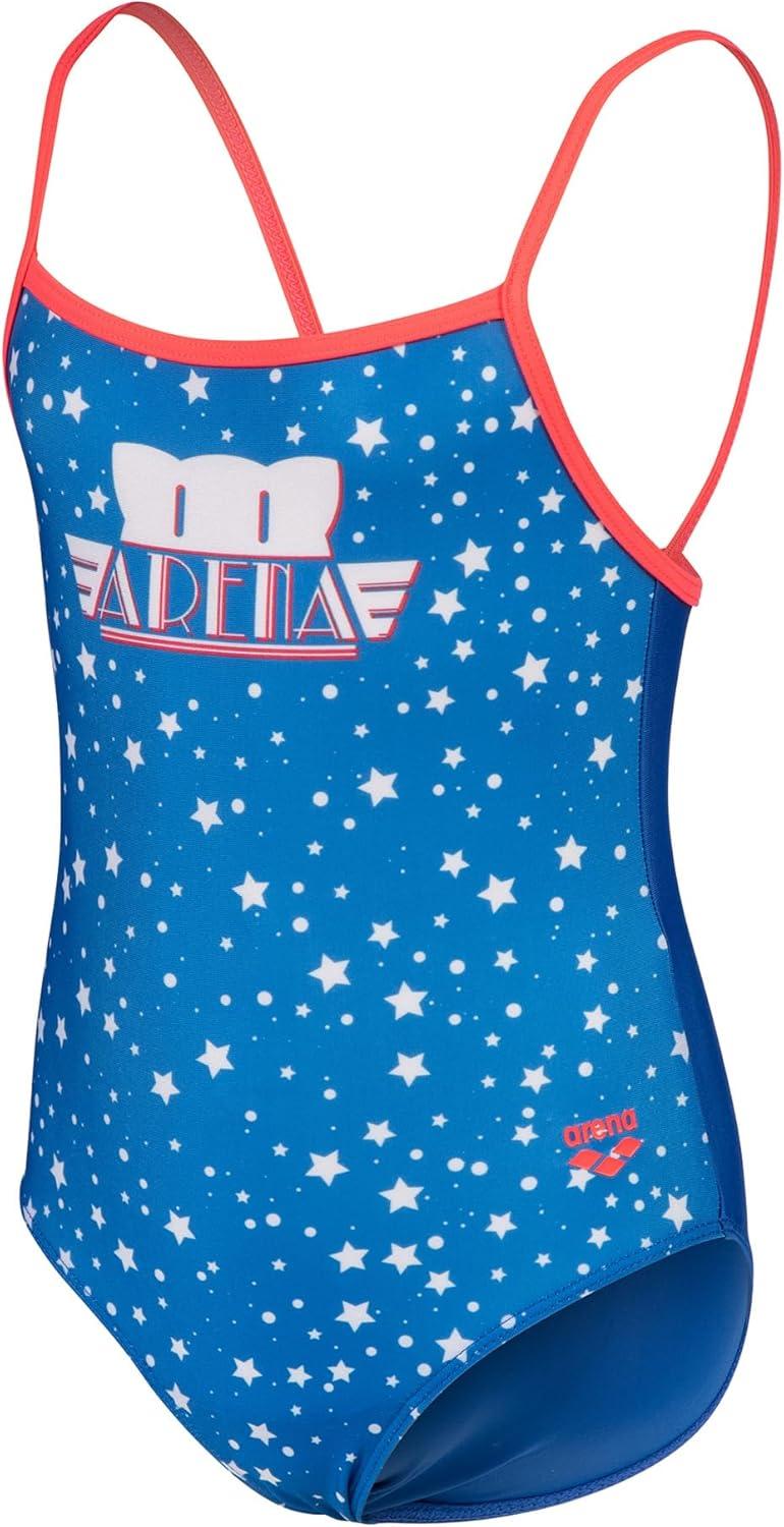 Arena Friends Girls’ Youth U Back US Swimsuit Comfortable One Piece Kids Suit Pool or Beach(Fluo Red/Multi)