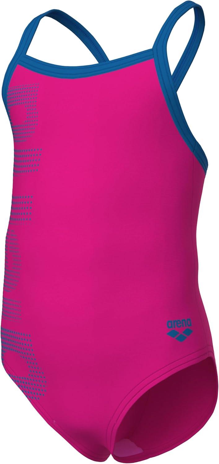 Arena Girls Arena Girls’ Logo Infant Toddler and Kids Athletic One Piece Sleeveless Swimsuit(Freak Rose/Blue China)