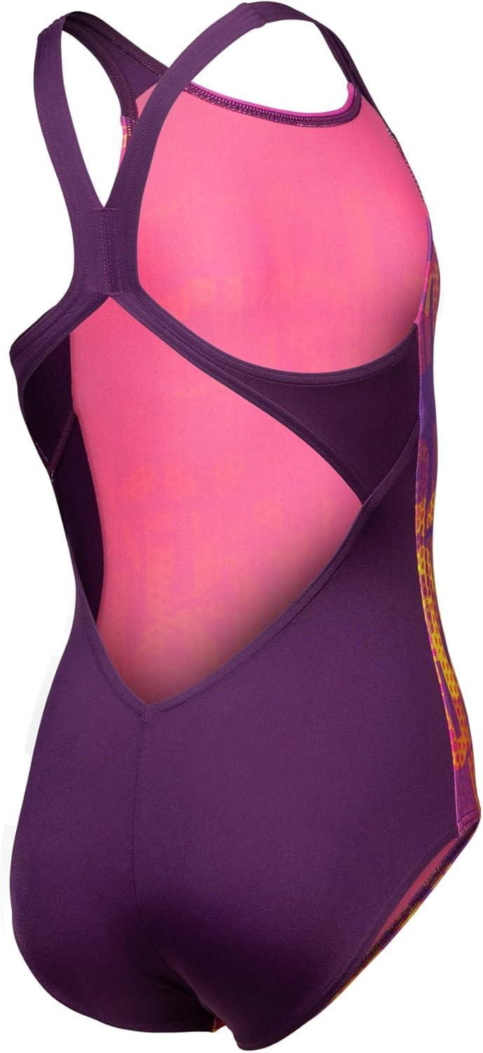 Arena Girls Arena Girls’ Performance Multi Color Athletic One Piece Beach Or Pool V Back Swimsuit(Plum Multi/Plum)