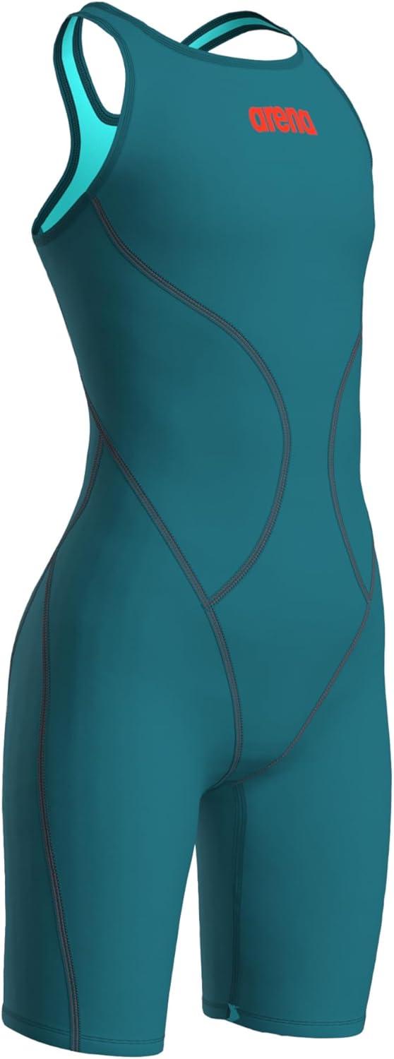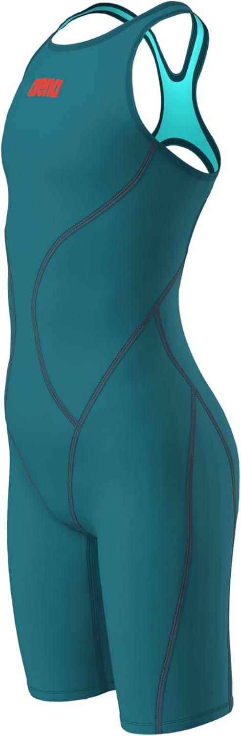 Equipped like the Pros! Pro-level performance for young competitive swimmers. The arena Powerskin Impulso Kneeskin Swim Racing Suit for girls offers moderate compression for great muscle support, an improved hydrodynamic position in the water and reduced drag. This technical suit is approved by World Aquatics. Cut from a lightweight and durable compressive woven fabric. A hydrophobic treatment ensures low water absorption and reduces the drag for high-class hydrodynamics. Be ready for the race in a short time! The comfortable stretch fabric allows easy and quick on-and-off. Finished with open back for maximum freedom of movement and excellent feel of the water. Strategically placed flatlock seams provide great comfort and improved freedom of movement. The Powerskin Impulso race suit is compliant for age 12 & under racing if competing at Jr Nationals, US Open, National Championships, or Olympic Trials. For all other meets, the Powerskin Impulso is NOT USA Swimming 12 & under approved due to its lightweight woven fabric construction.