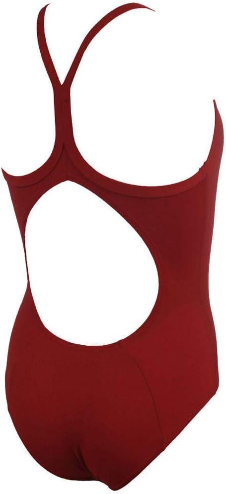 ARENA Girl’s Master MaxLife Sporty Thin Strap Racer Back One Piece(Berry Red/Metallic Silver)