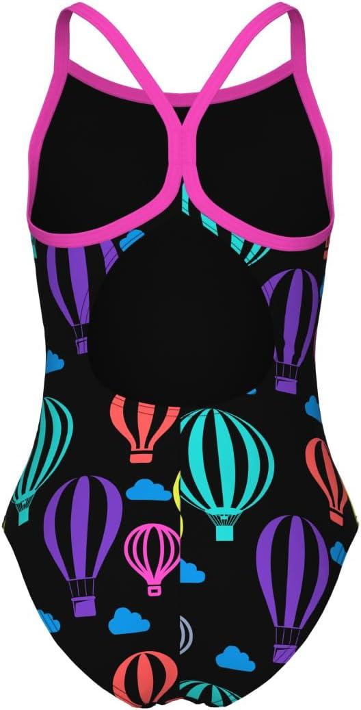 ARENA Girls Performance Balloons Light Drop Back Swimsuit Junior One Piece Bathing Suit(Black Multi/Shocking Pink)