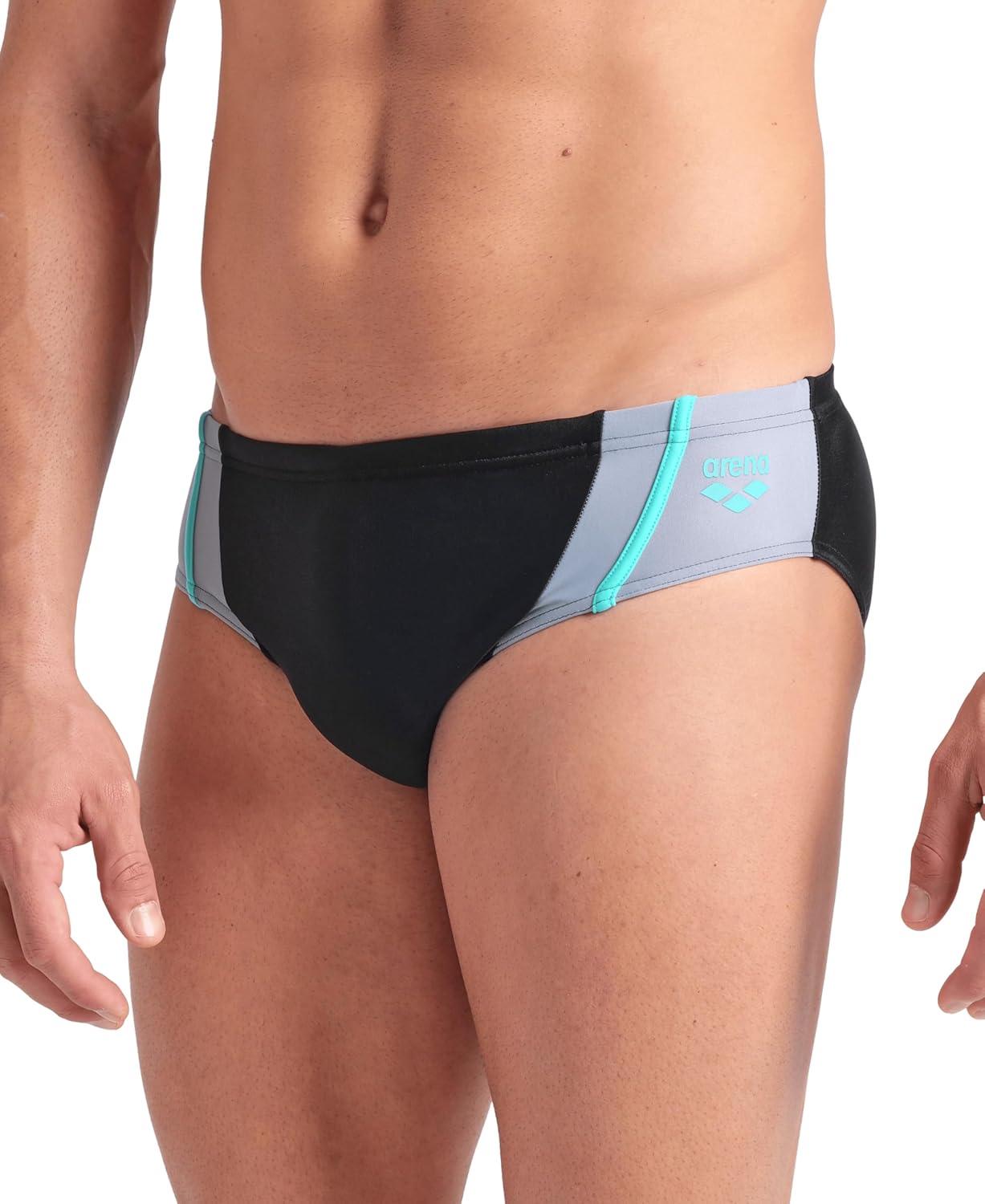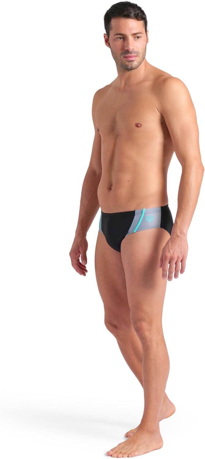 Arena Mens Arena Feel Men’s Multi Panels Swim Briefs Comfortable Pool Beach Swim Bathing Suit(Black/Sea Foam/Water)