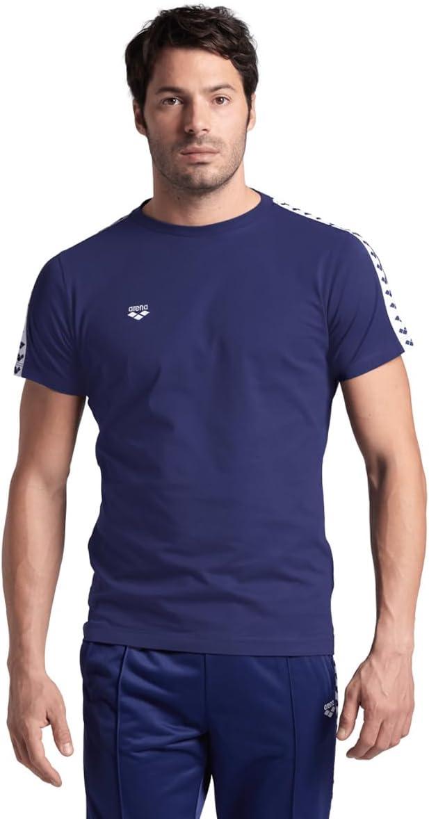 Arena Mens Arena Men’s Team T-Shirt 100% Cotton Slim Fit Short Sleeve Casual Athletic Wear(Navy/White/Logo)