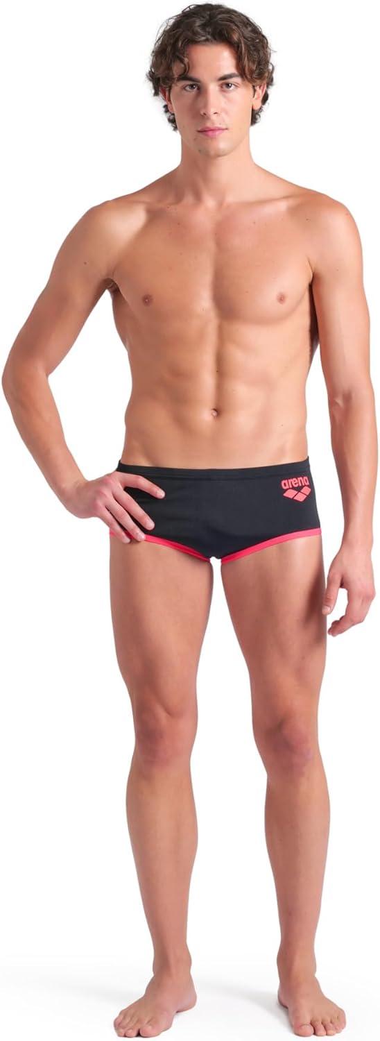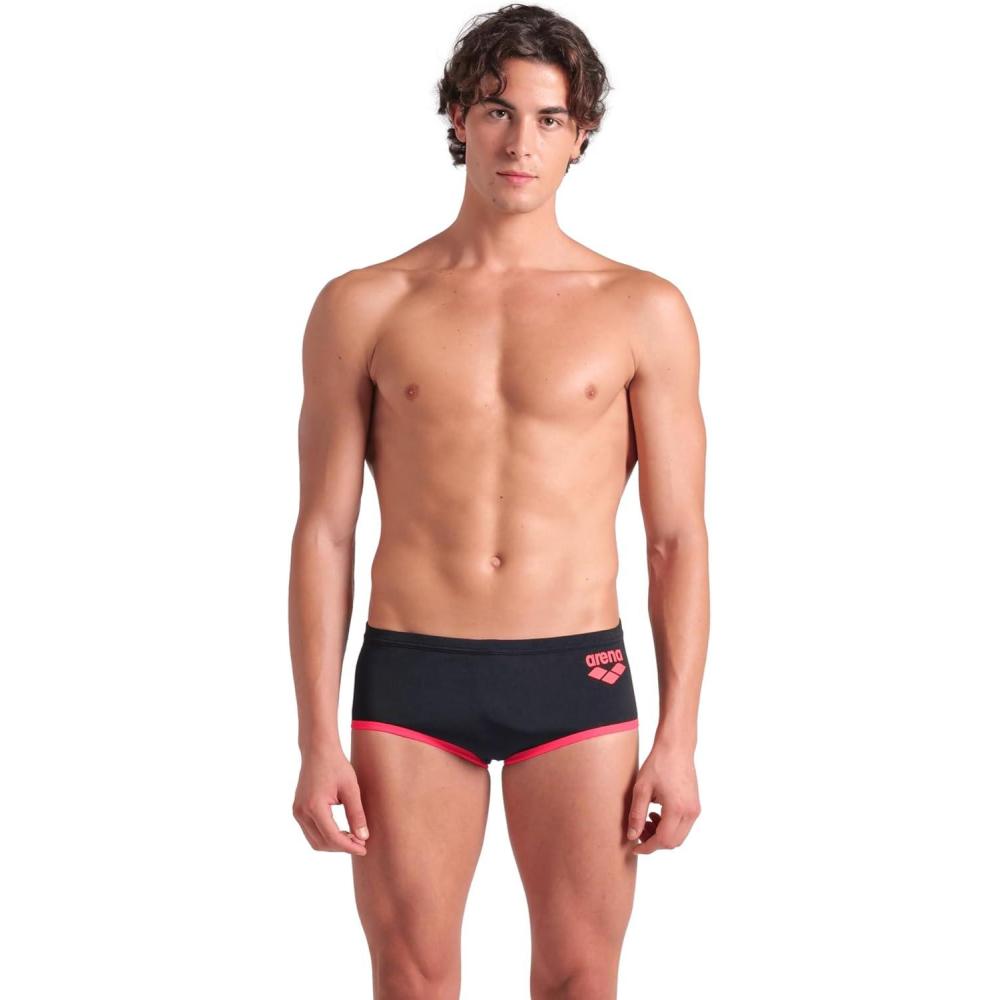 Arena Mens Arena One Men’s Big Logo Low-Waist Swim Short Pool Practice Athletic Swimsuit(Black/Fluo Red)