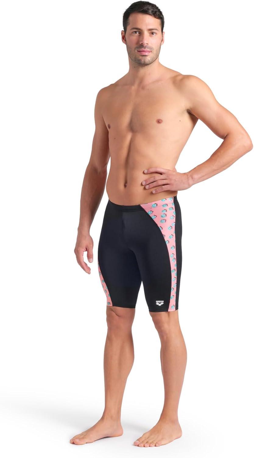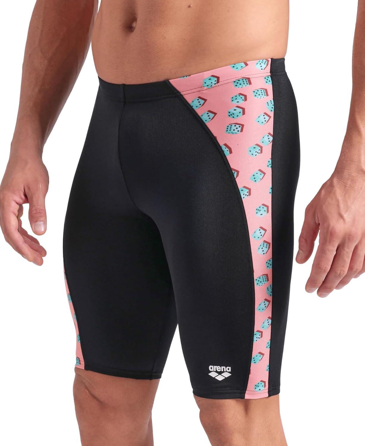 Arena Mens Arena Performance Men’s Dices Swim Jammer Athletic Swimwear Professional Training Suit(Black/Pink Multi)