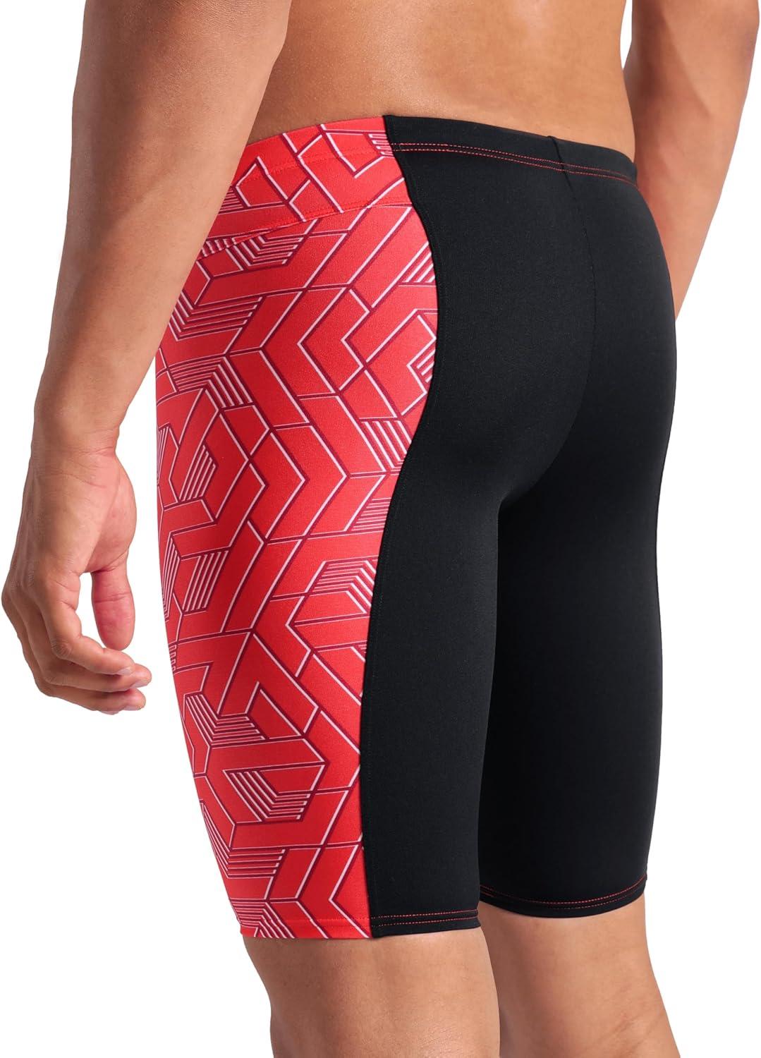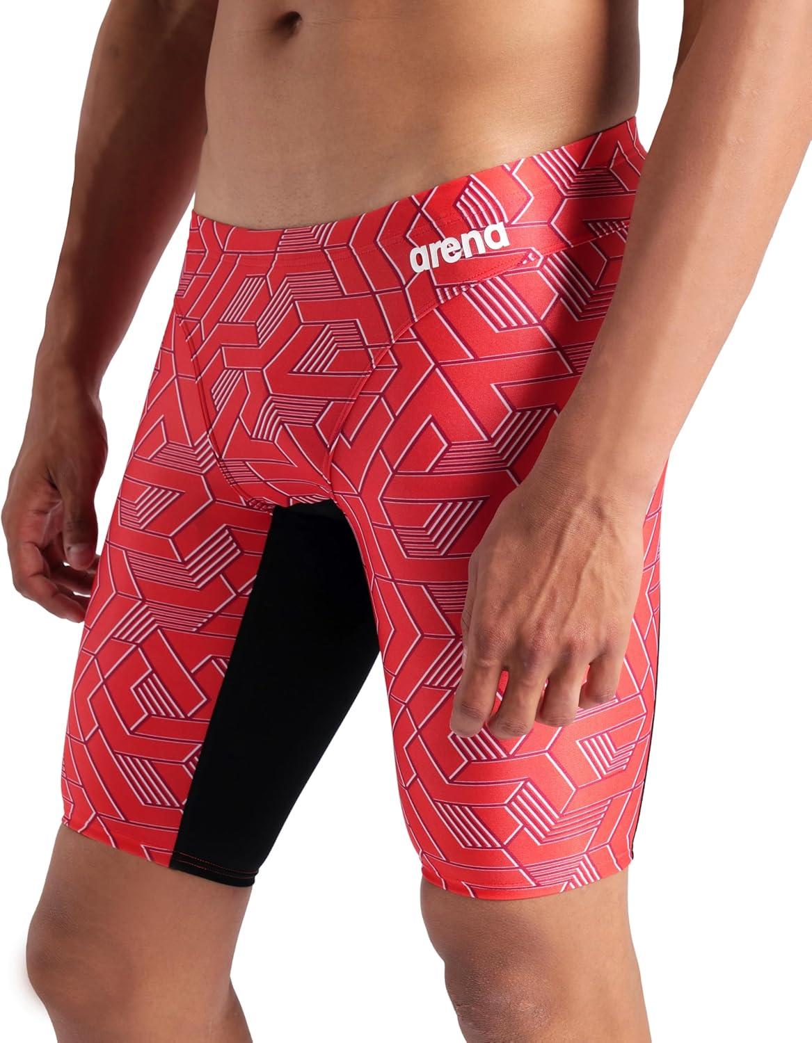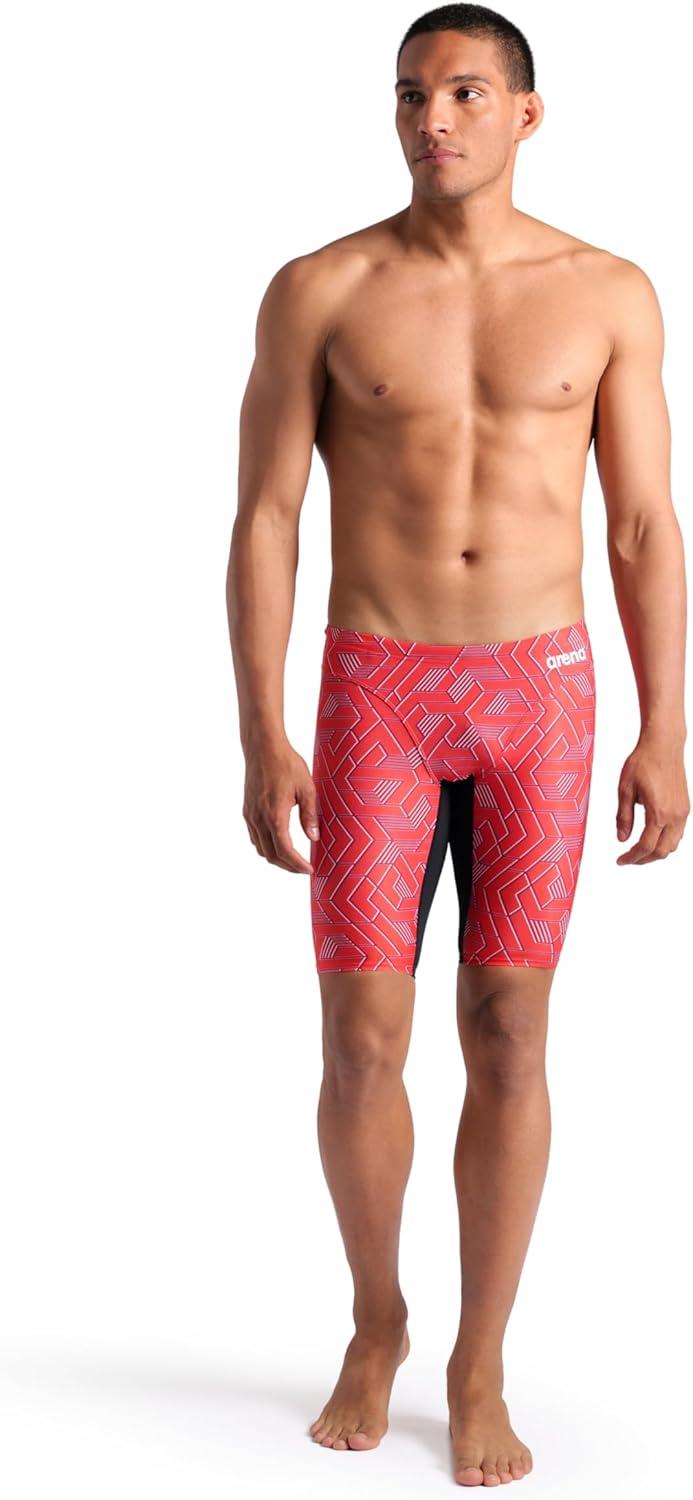 Arena Mens Arena Performance Men’s Escape Swim Jammer Athletic Swimwear Professional Swimsuit(Black/Team Red)
