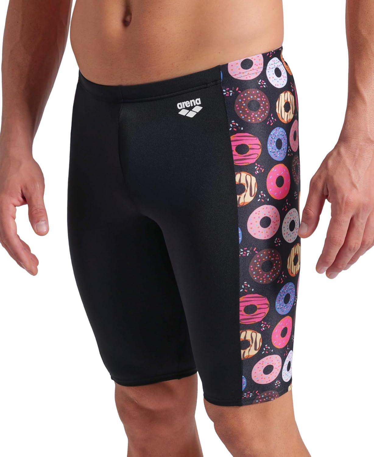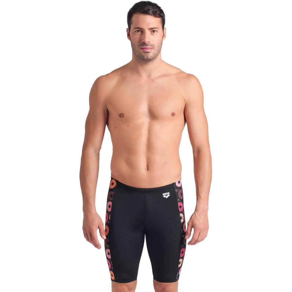 Arena Mens Arena Performance Men’s Funny Prints Collection Donuts Swim Jammer Tight Swim Shorts(Black/Black Multi)