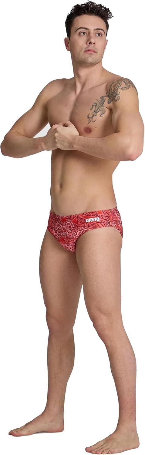 Arena Mens Arena Performance Men’s Hydrangea Bouquet Swim Briefs Athletic Swimwear for Training(Team Red)