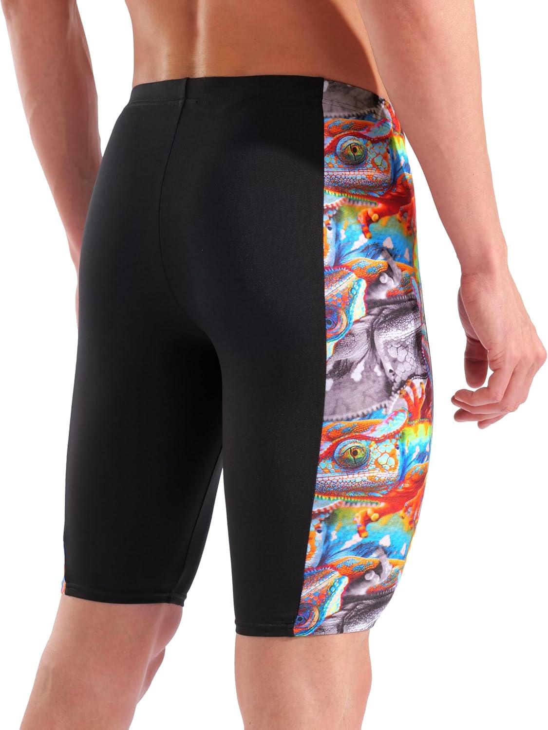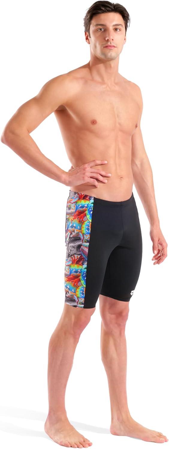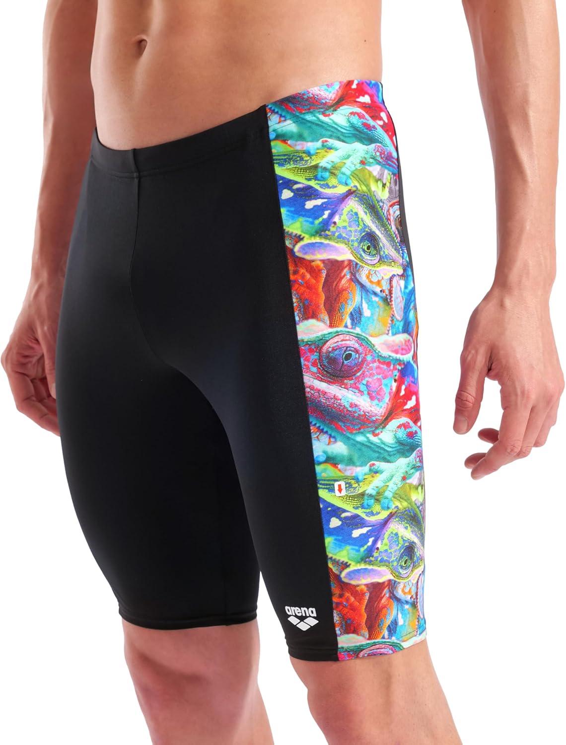 Arena Mens Arena Performance Men’s Iguanas Swim Jammer Sports Shorts Knee-Length Bathing Suit(Black/Multi)