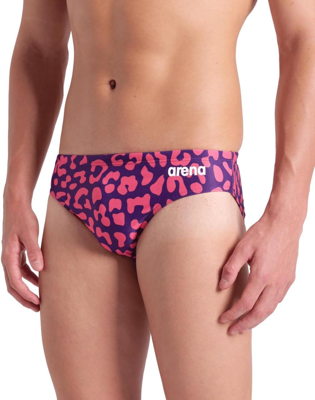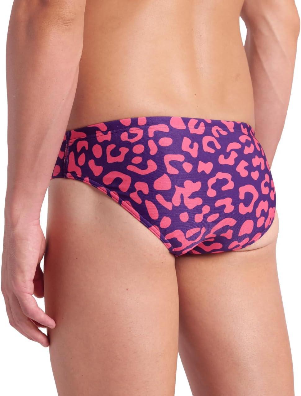 Arena Mens Arena Performance Men’s Leopard Skin Limited Edition Printed Swim Briefs(Fuchsia Multi/Black)