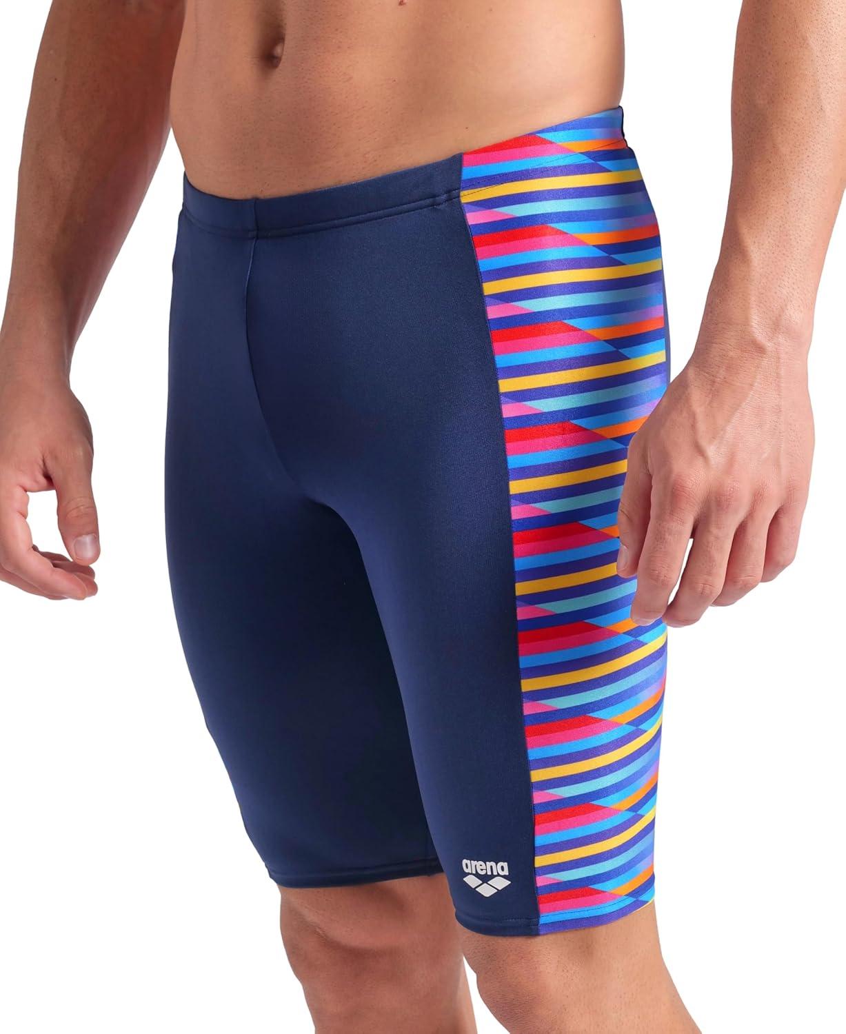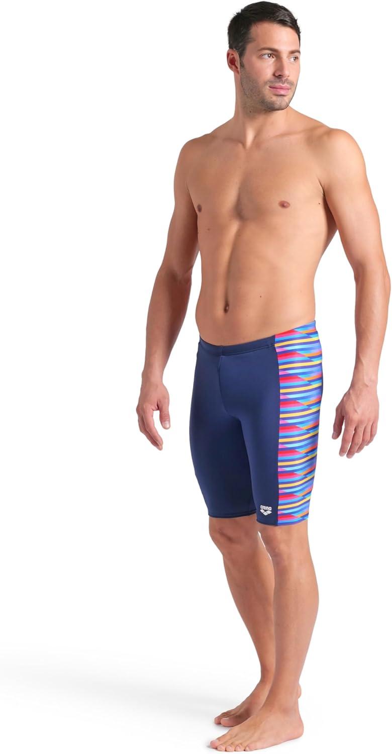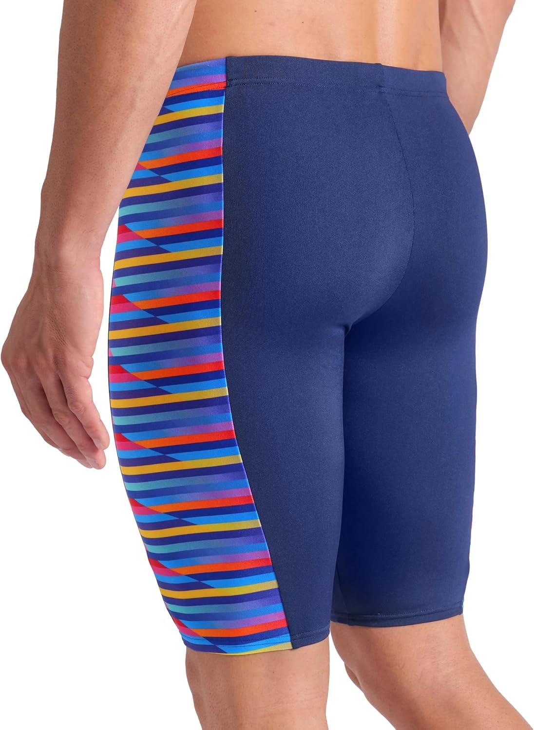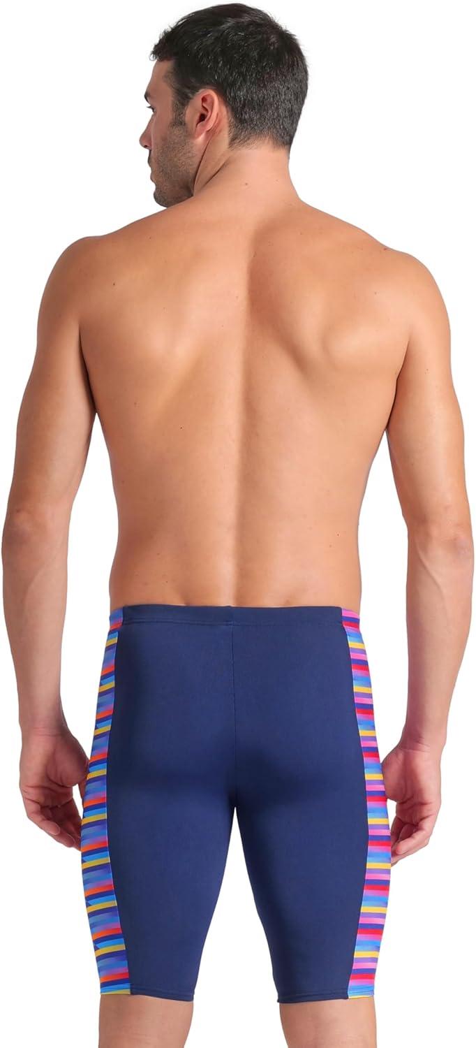 Arena Mens Arena Performance Men’s Racing Stripe Swim Jammer Knee-Length Training Bathing Suit(Navy/Multi)