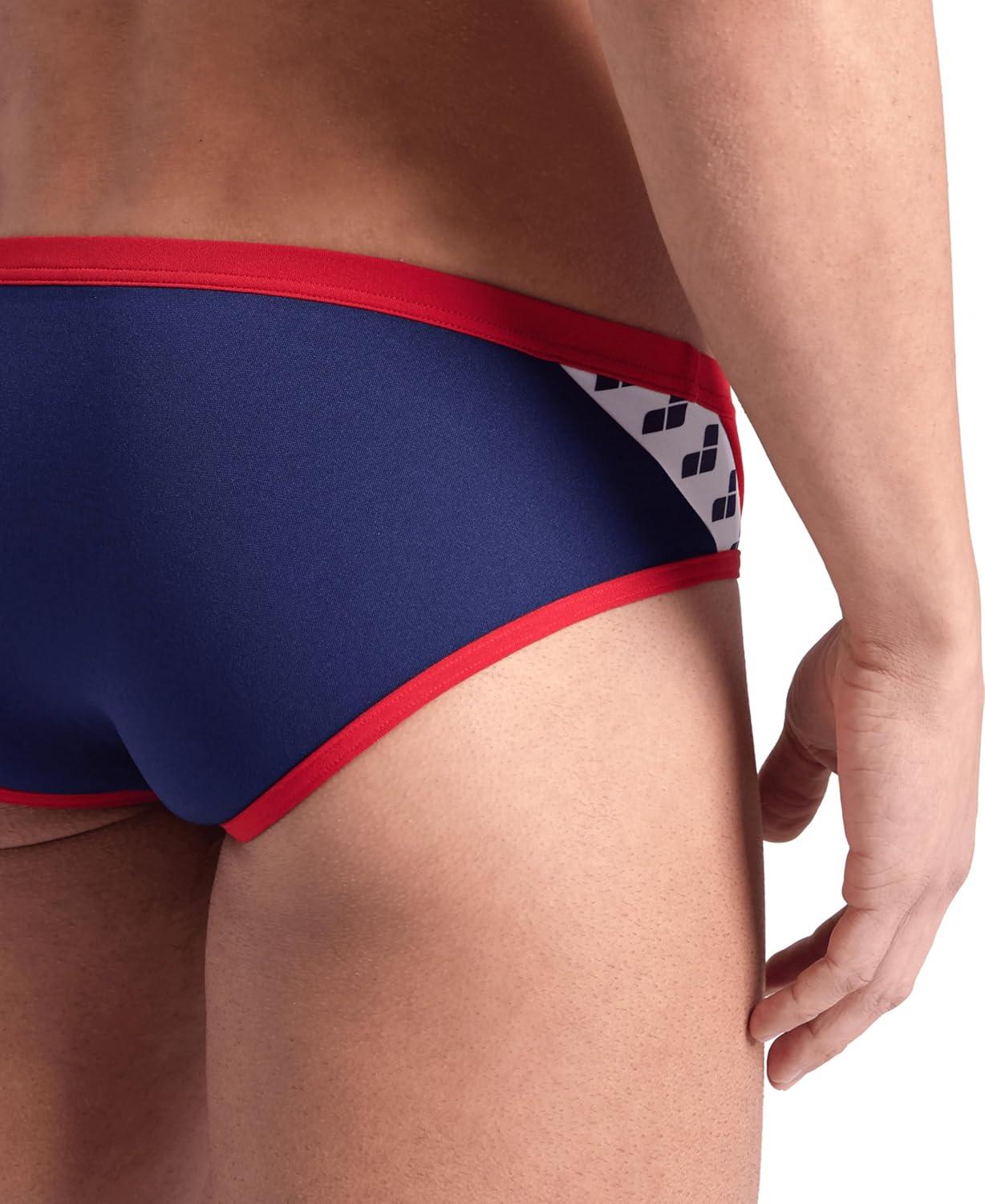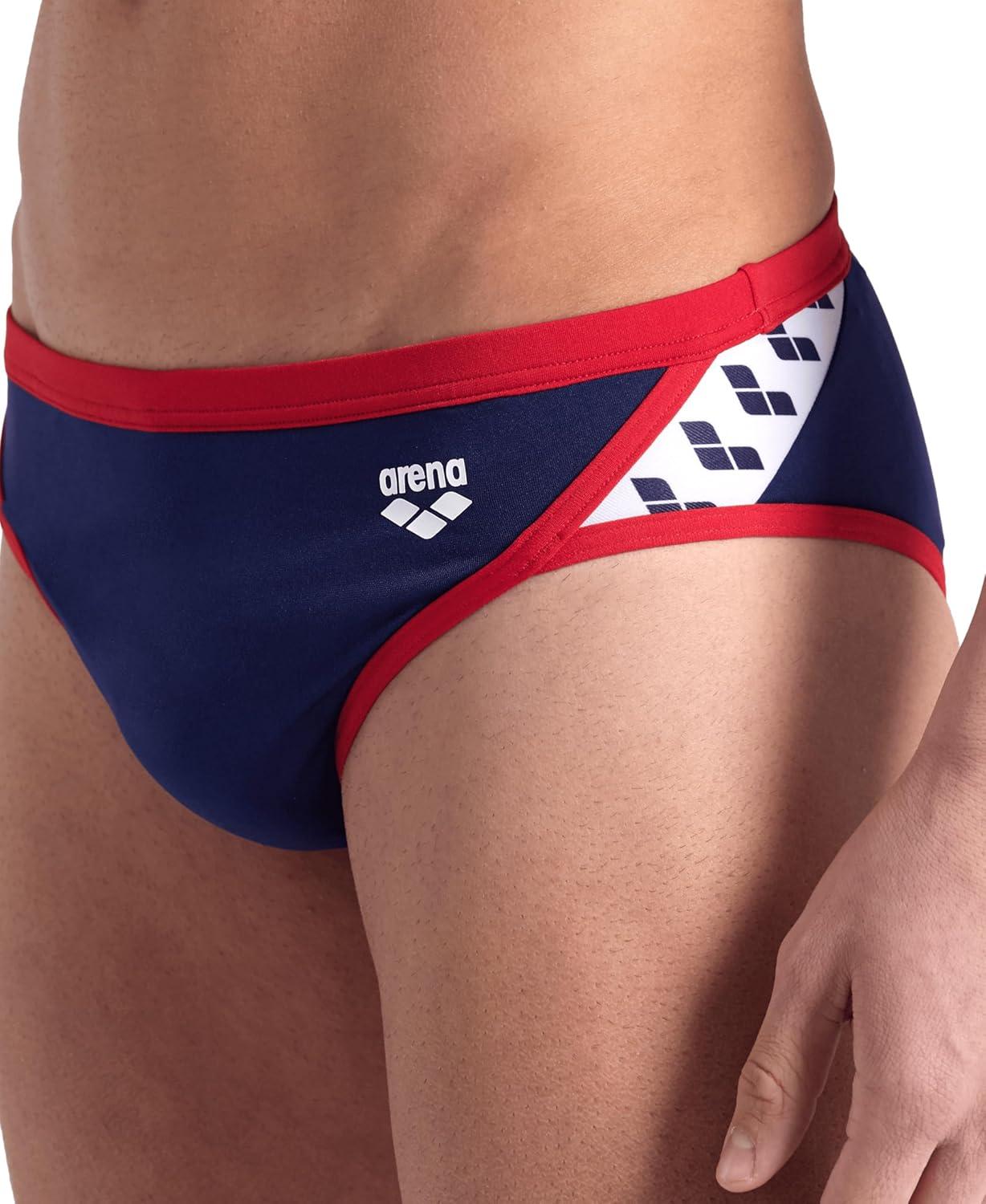 ARENA Men’s Icons Solid Swim Briefs Professional Training Swimsuit Sports Trunk(Navy/Red)