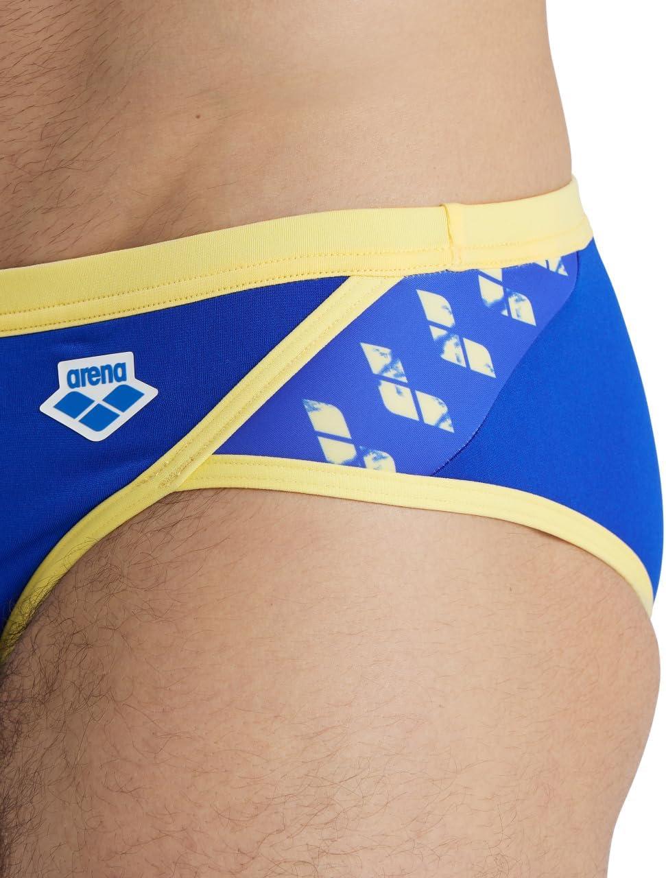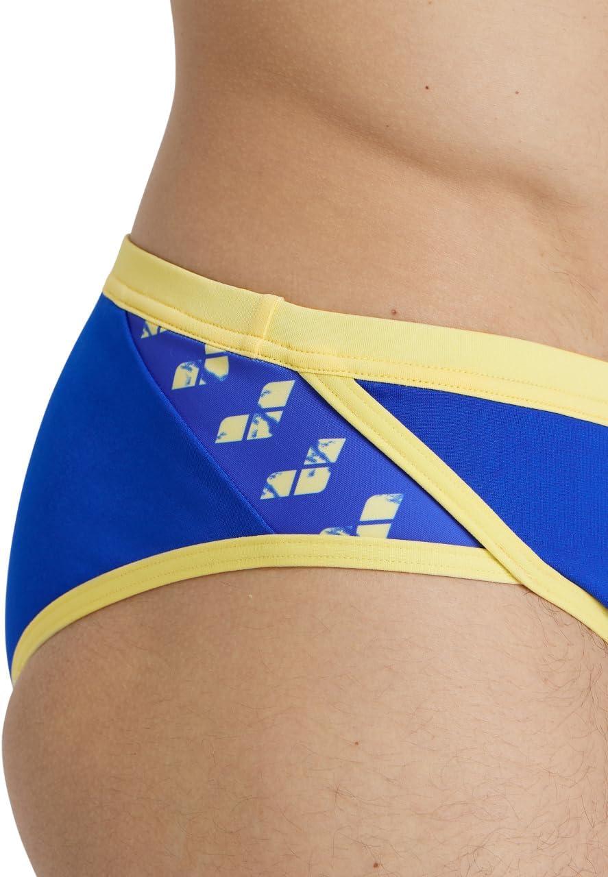ARENA Men’s Icons Solid Swim Briefs Professional Training Swimsuit Sports Trunk(Neon Blue/Butter)