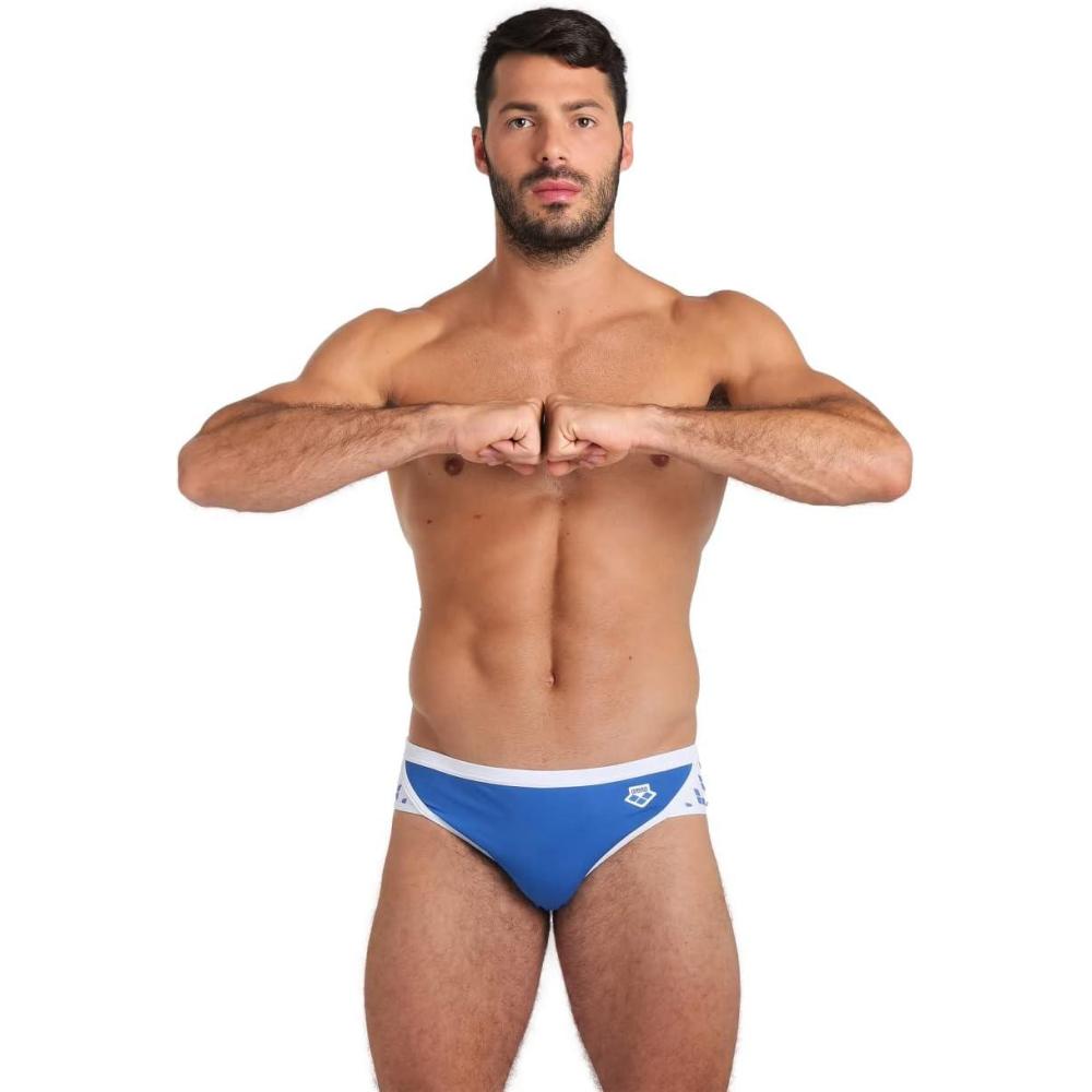 ARENA Men’s Icons Solid Swim Briefs Professional Training Swimsuit Sports Trunk(Royal/White Logo)