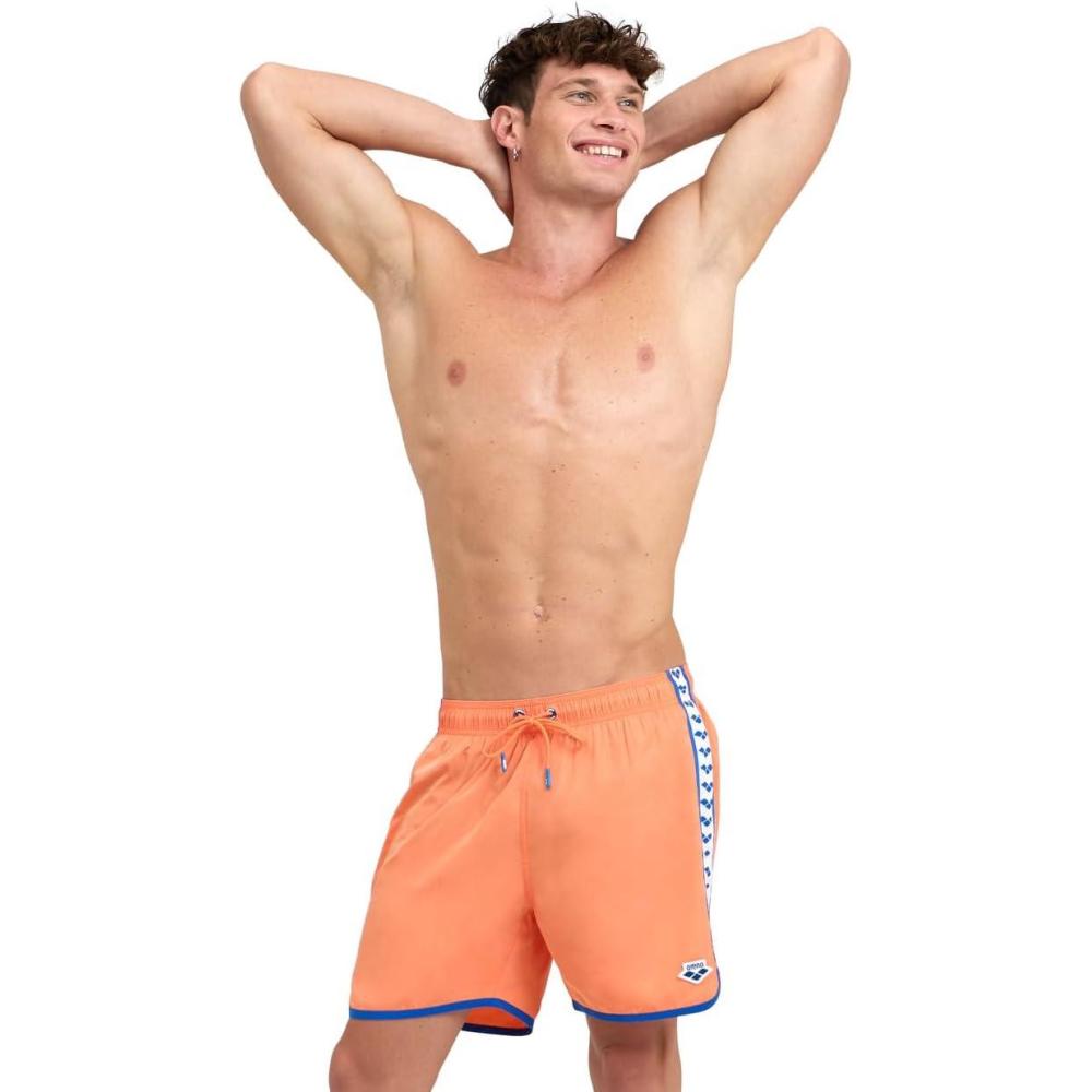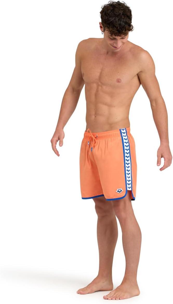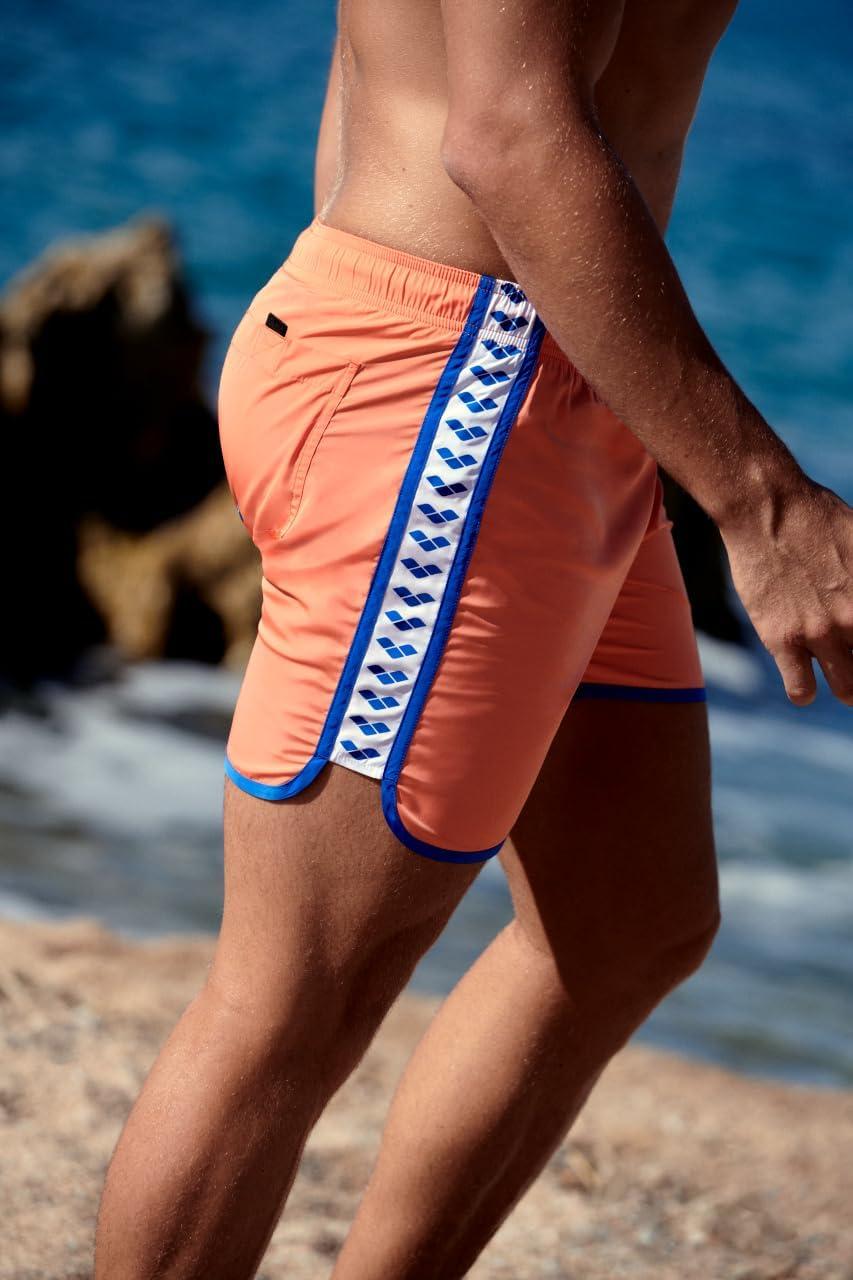 Arena Men’s Icons Team Stripe Beach Short Boxers Swimming Bermuda with Mesh Inner Brief, Back Pocket, Pool Beach Vacation(Nespola/Royal)