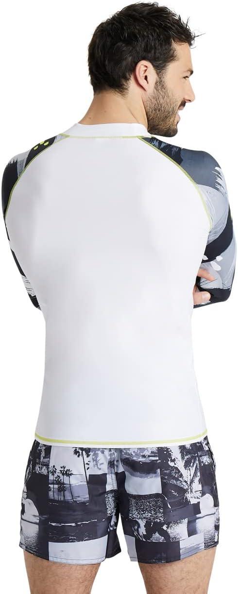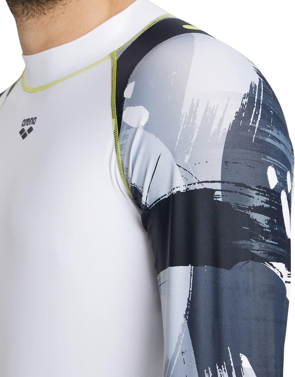 ARENA Mens Men Uv Protection Long Sleeve Shirt Rash Allover(White-gray Multi)