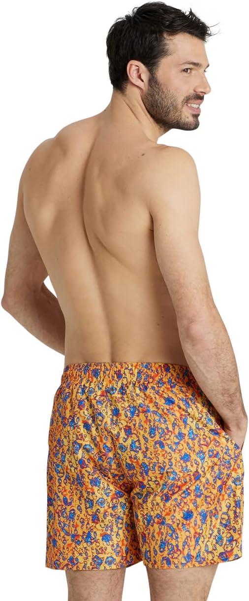 ARENA Mens Men’s Beach Boxer Allover Swim Trunk Beach Shorts(Orange)