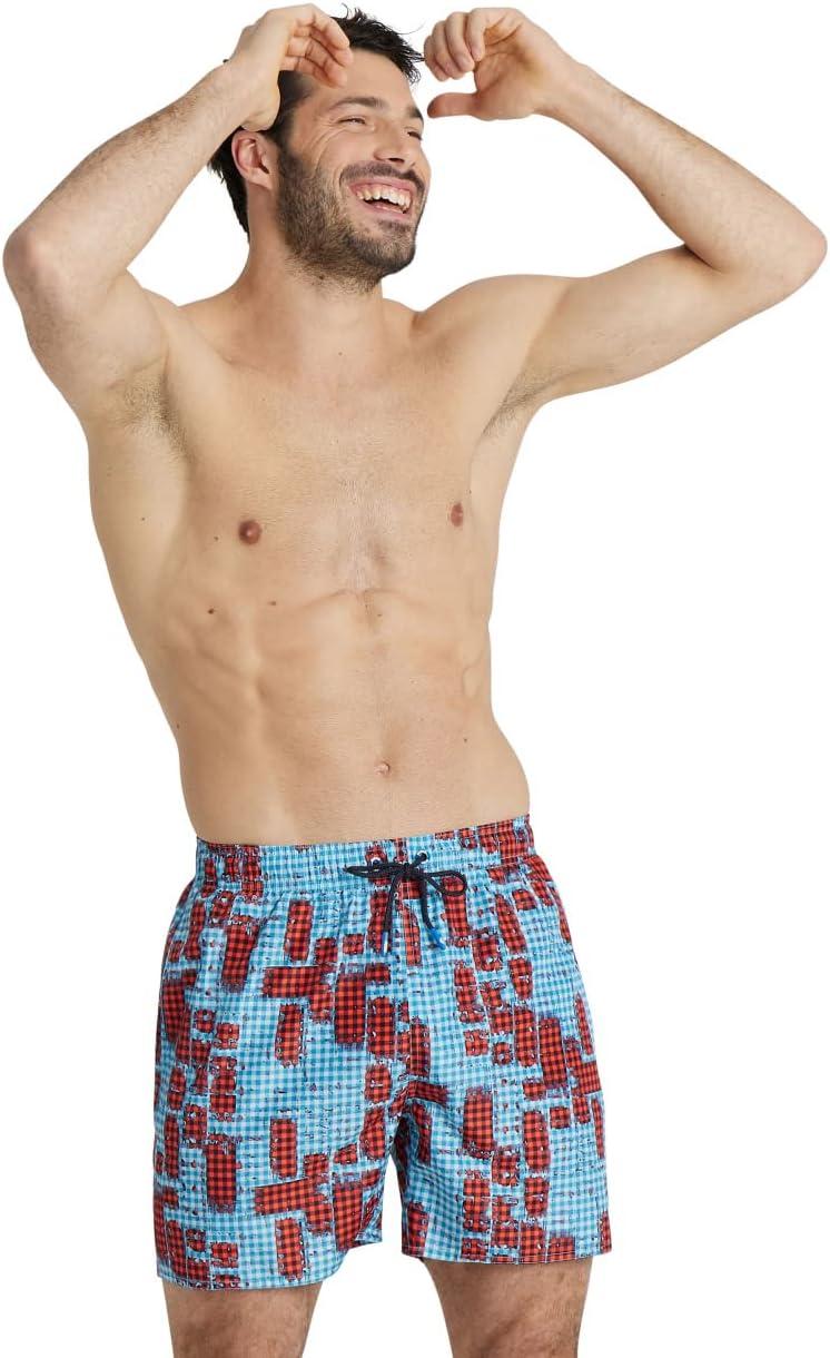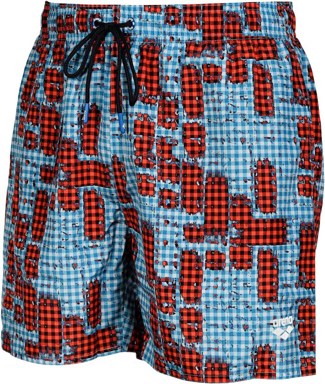 ARENA Mens Men’s Beach Boxer Allover Swim Trunk Beach Shorts(Red)