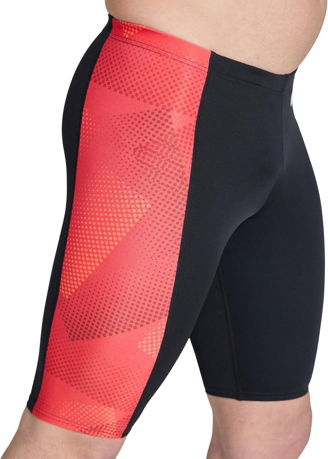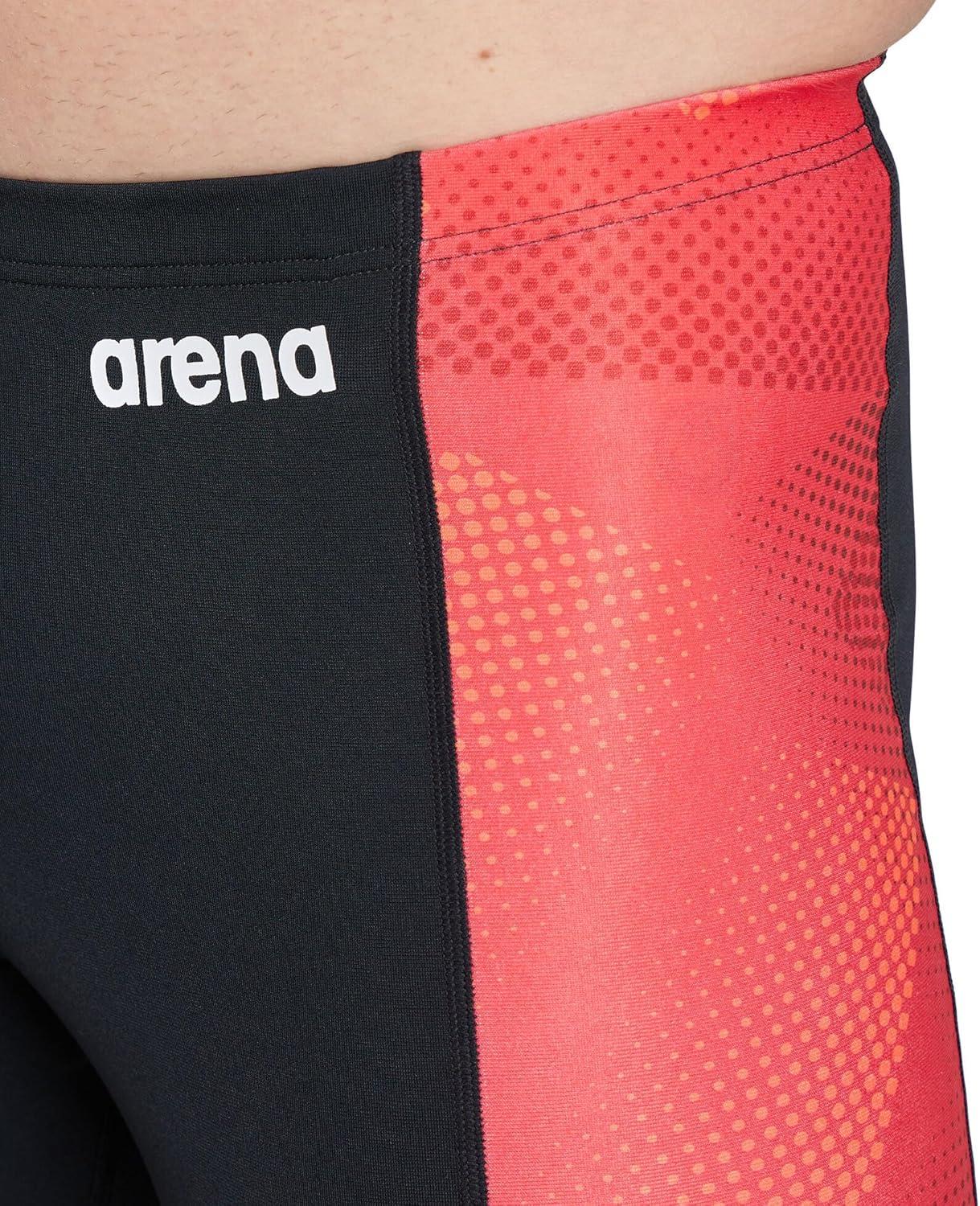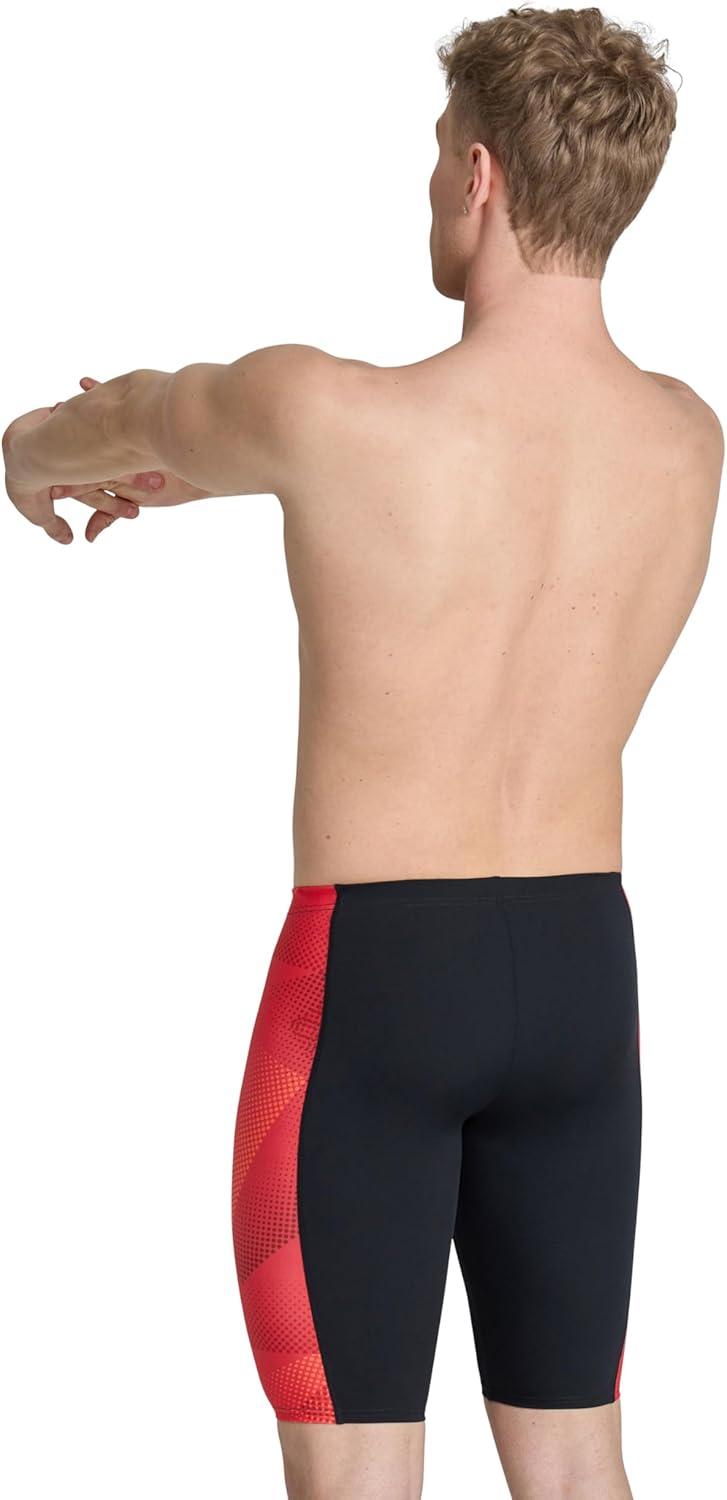Arena Mens Performance Halftone Team Print Swim Jammer Intensive Training Bathing Suit(Black/Team Red)