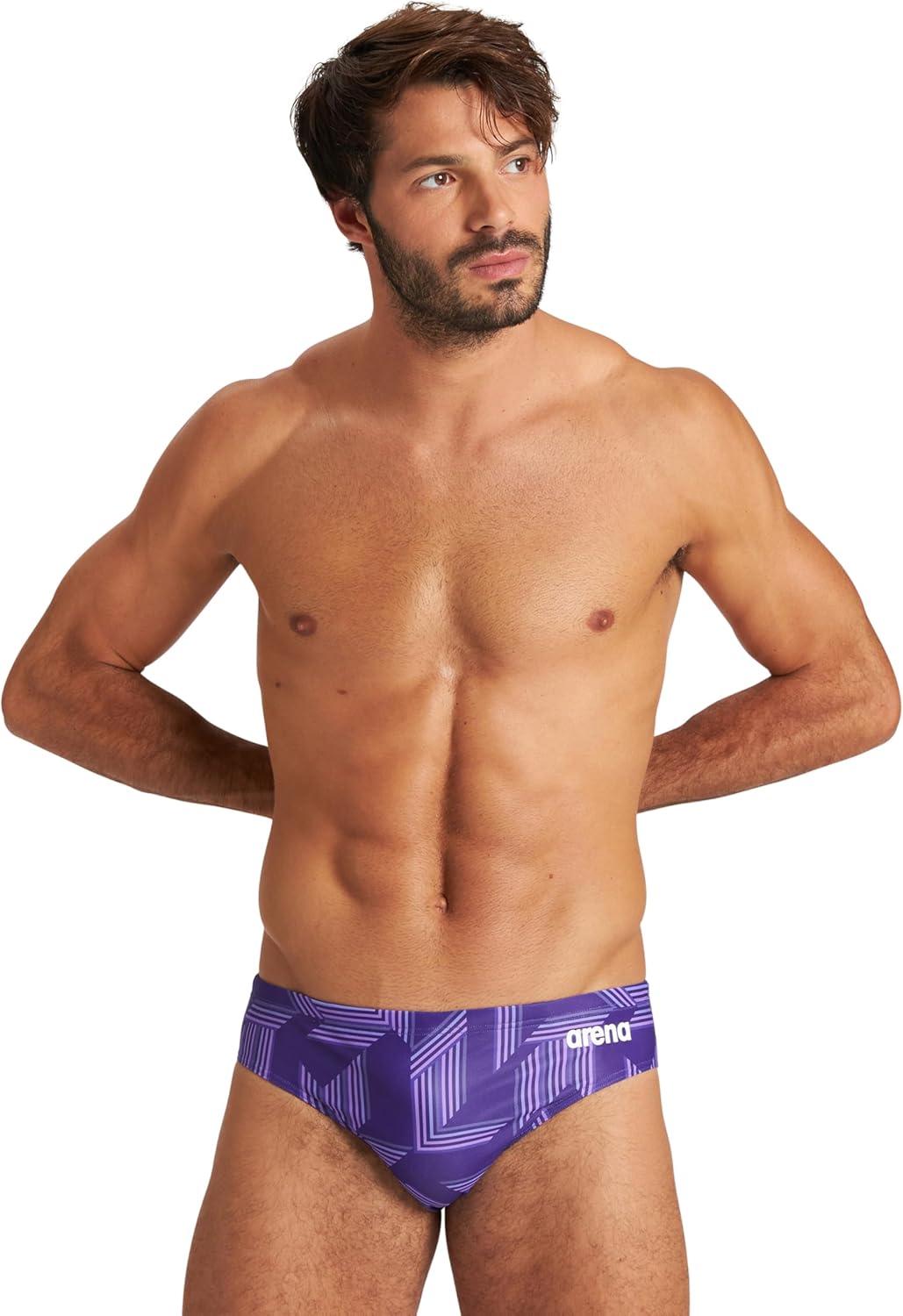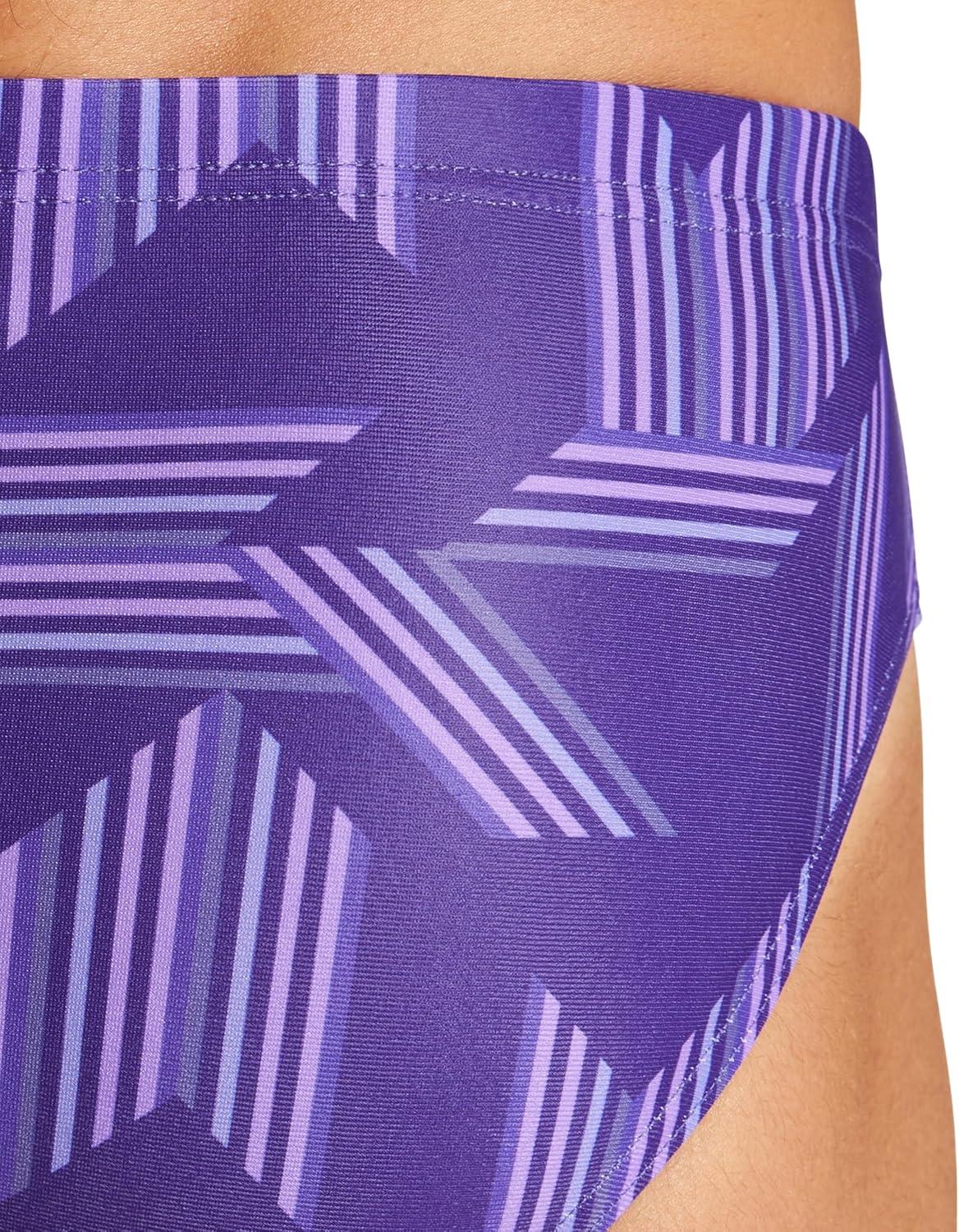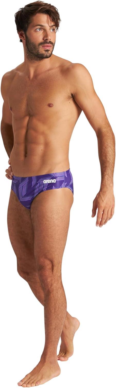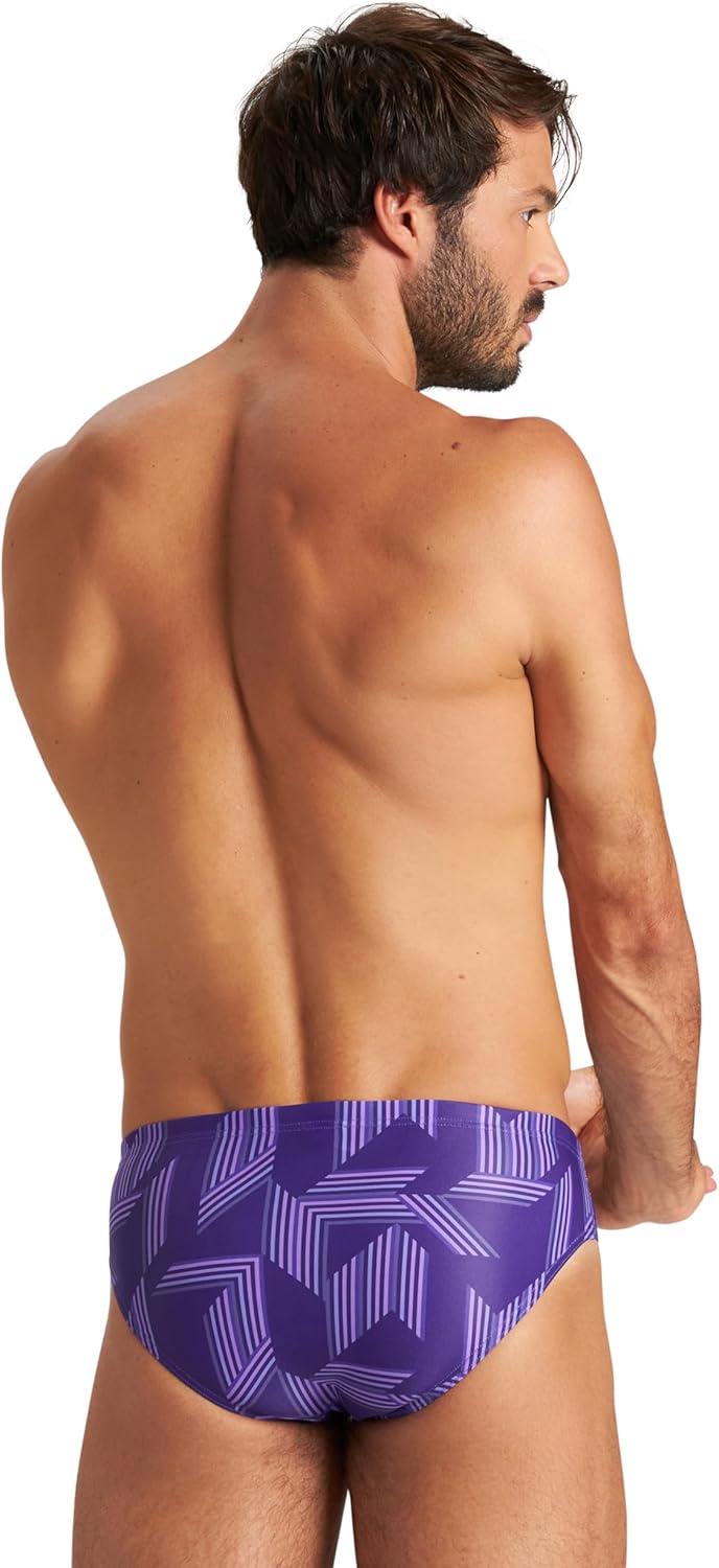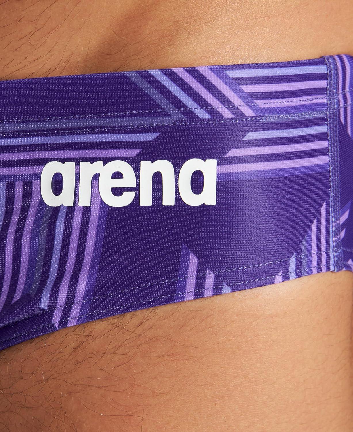 Arena Mens Performance Puzzled Team Print Swim Brief Intensive Training Pro Bathing Suit(Black/Purple Multi)