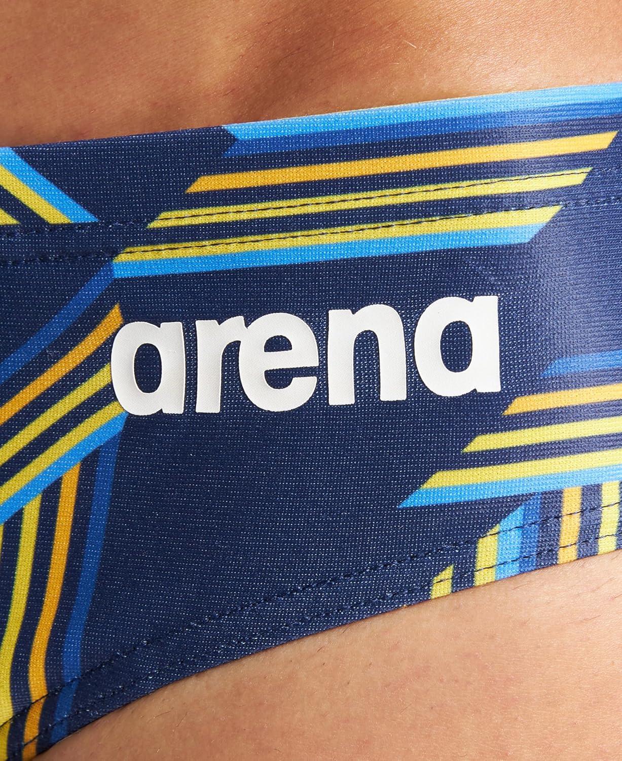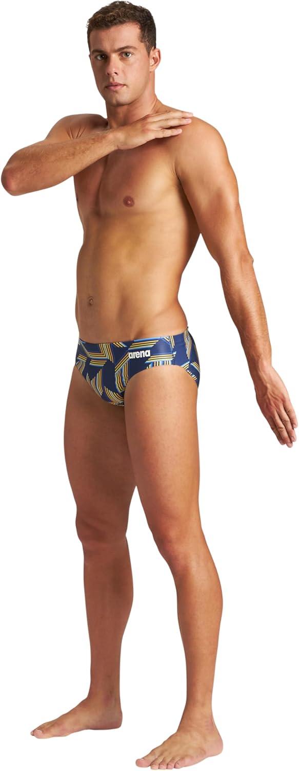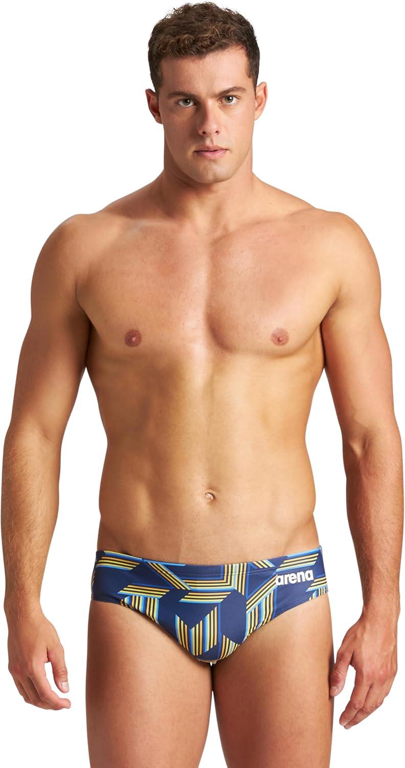 Arena Mens Performance Puzzled Team Print Swim Brief Intensive Training Pro Bathing Suit(Navy-yellow Star Multi)