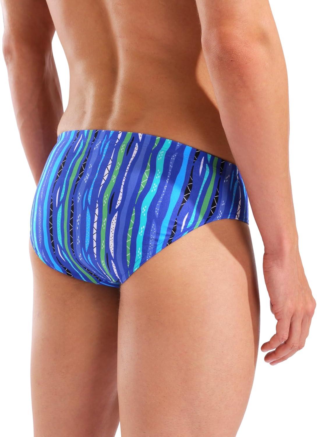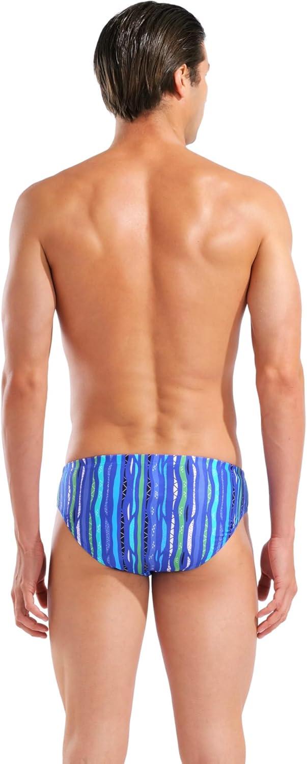 Durable, chlorine resistant men's swim briefs designed for long lasting performance in both competitive and everyday pool sessions, with eye-catching print for a stylish touch