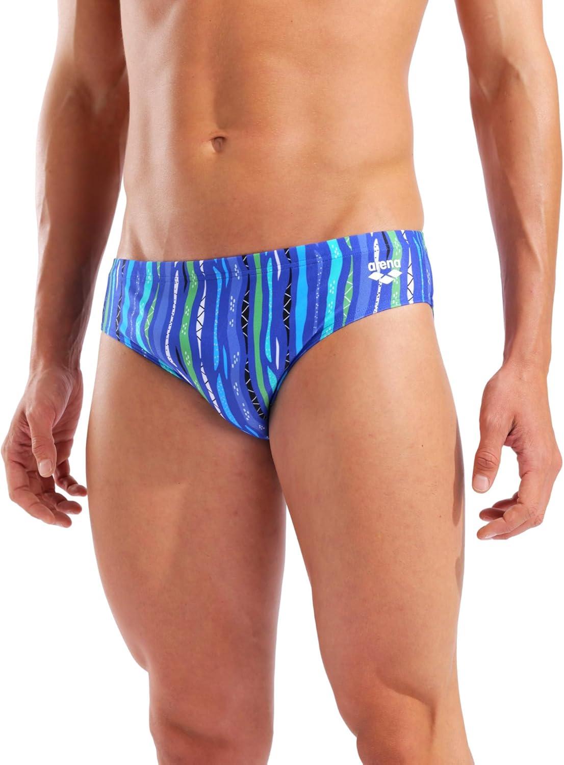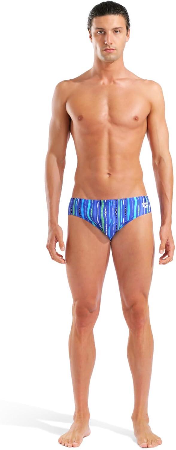 Arena Mens Performance Stripes Swim Briefs Chlorine Resistant Long Lasting Sports Bathing Suit(Navy/Navy Multi)