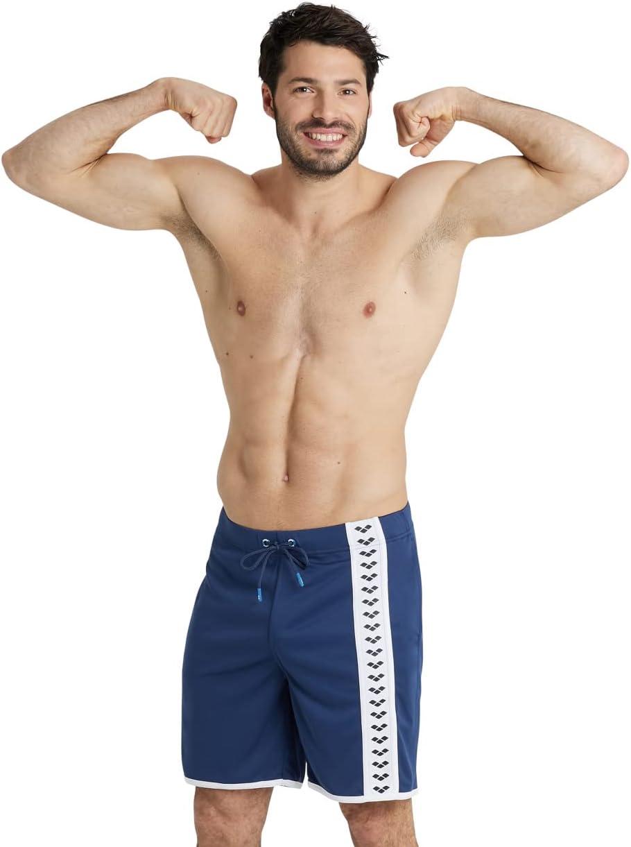 ARENA Men’s Standard Icons Bermuda Logo Swim Trunk Beach Shorts(Navy / White)