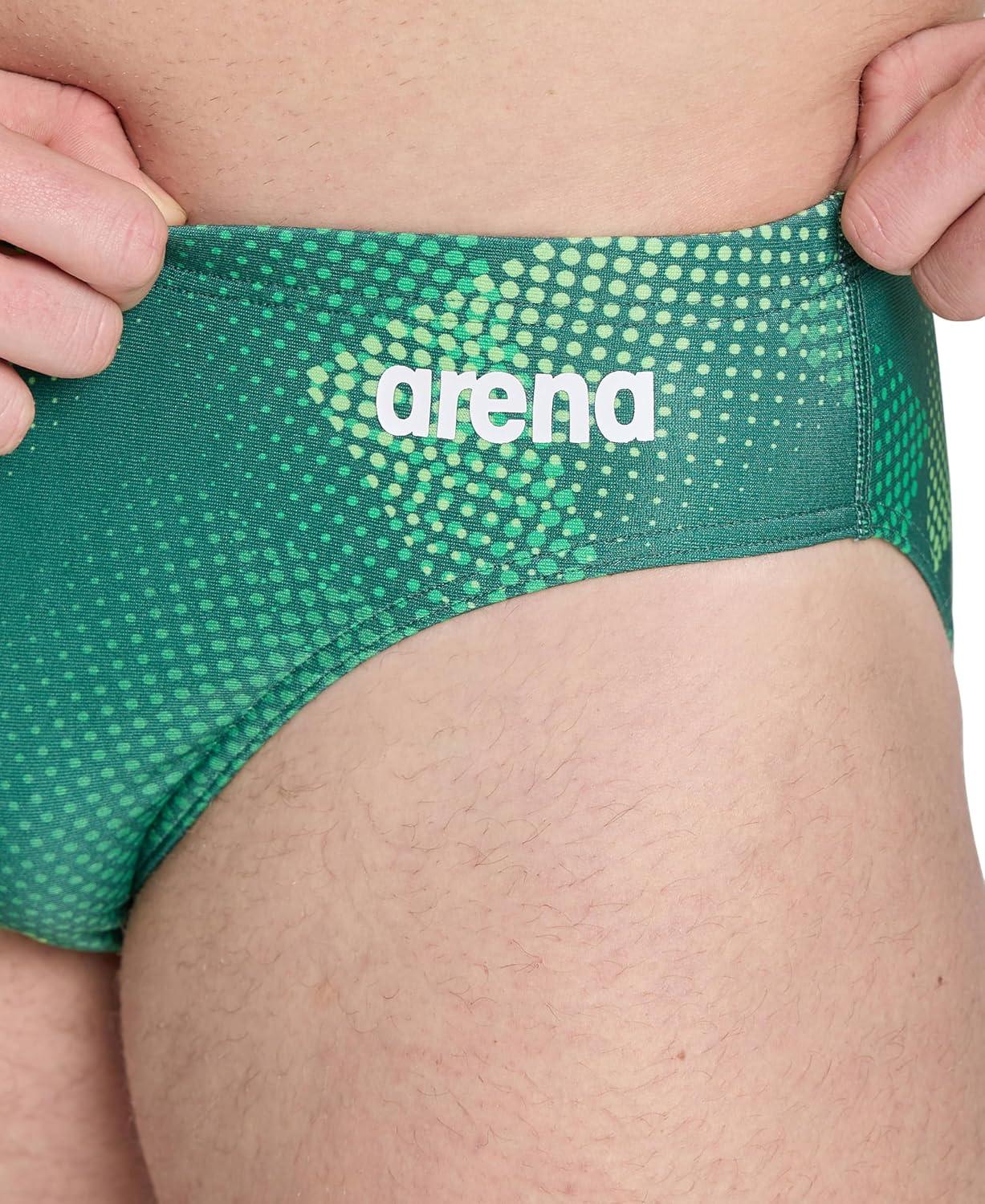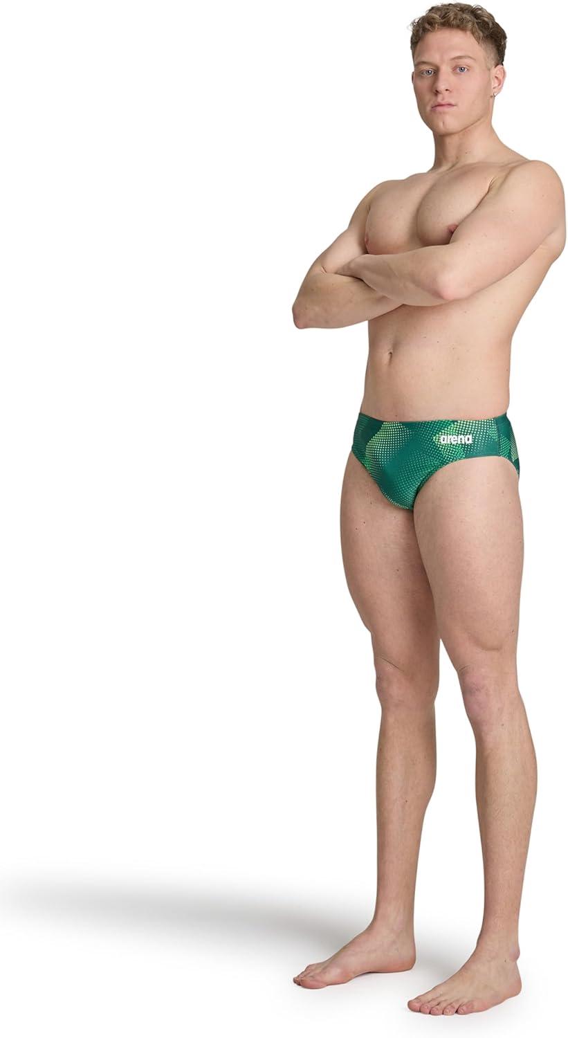 ARENA Men’s Swim Brief Halftone Team Print MaxLife Athletic Swimwear Professional Training Swimsuit Sports Bathing Suit(Team Green)