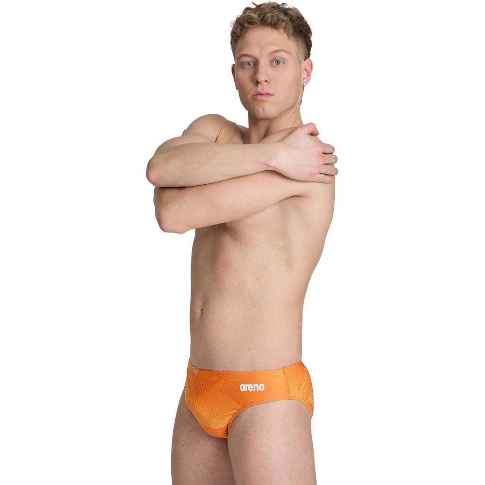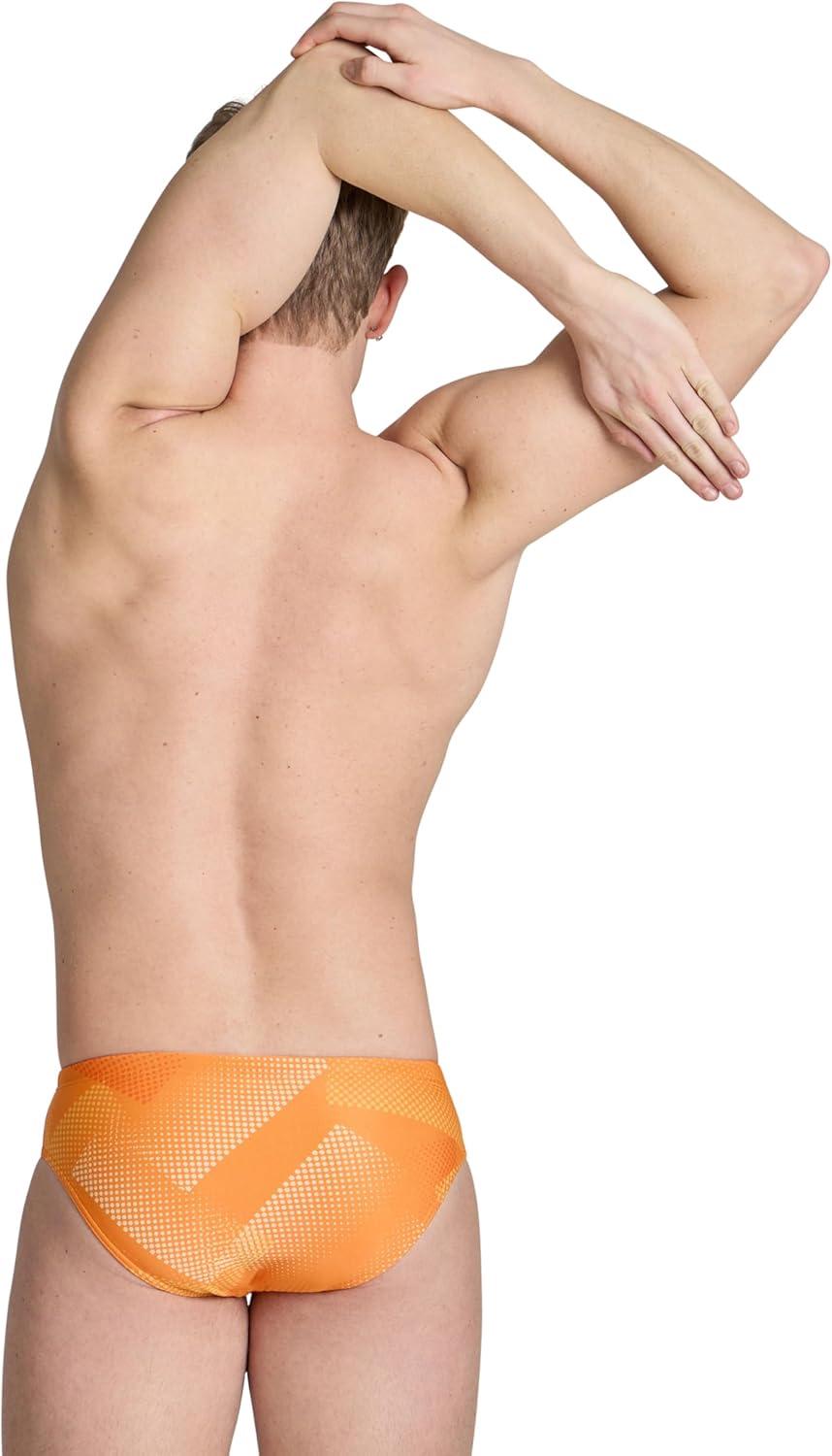 ARENA Men’s Swim Brief Halftone Team Print MaxLife Athletic Swimwear Professional Training Swimsuit Sports Bathing Suit(Team Orange)