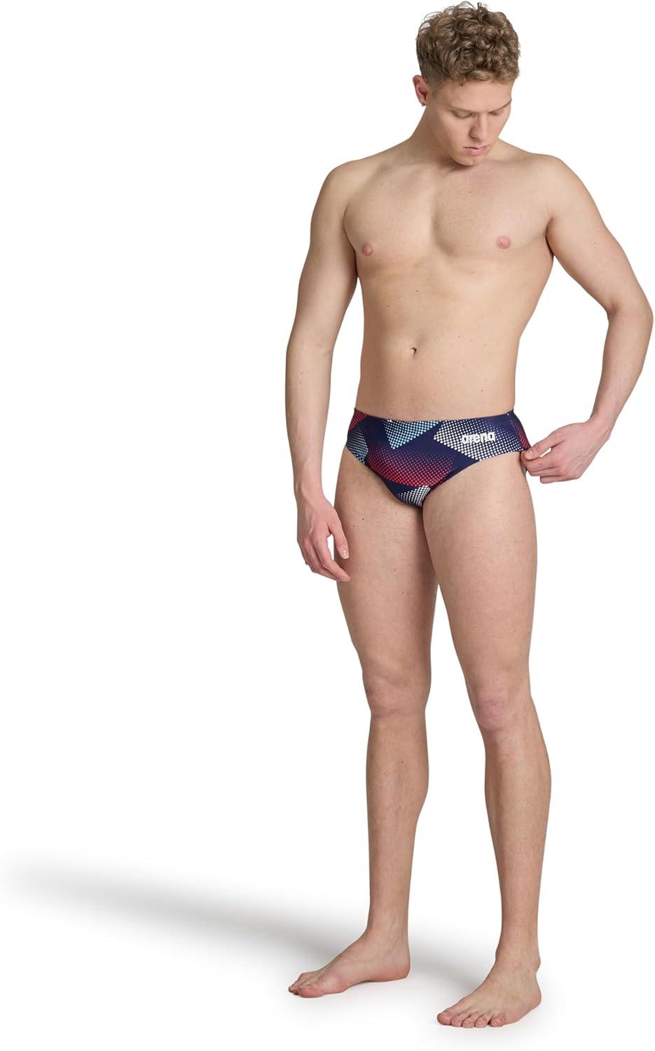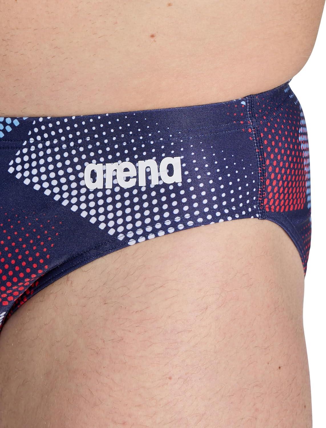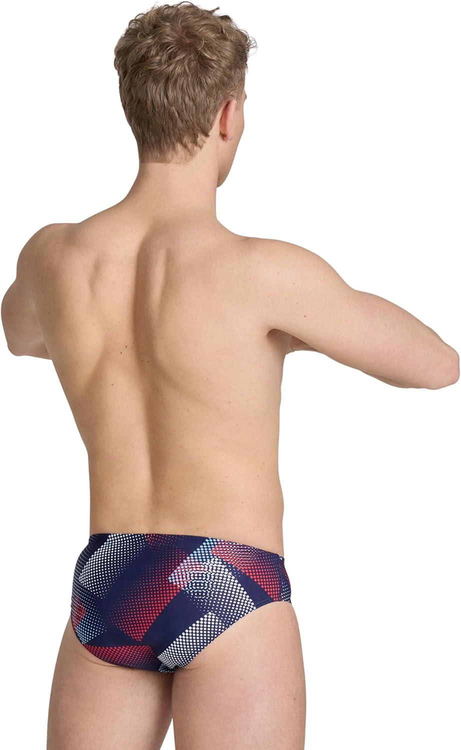 ARENA Men’s Swim Brief Halftone Team Print MaxLife Athletic Swimwear Professional Training Swimsuit Sports Bathing Suit(Team Red White Blue)