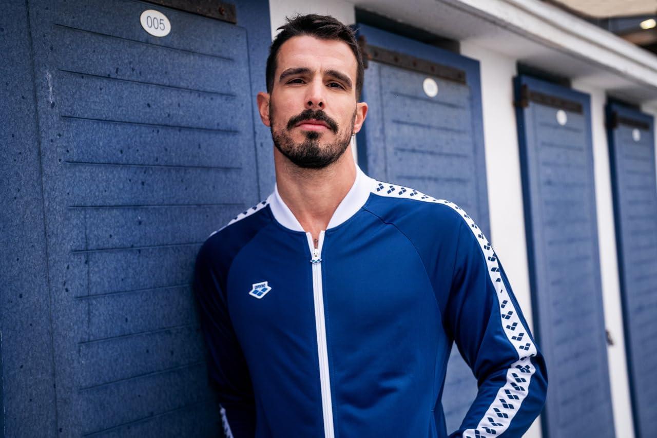 Arena Men’s Team Relax IV Track Jacket Front Zip Side Pockets Warm-Up Top Lightweight Athletic Retro Cool Bomber Jacket(Navy/White/Navy)