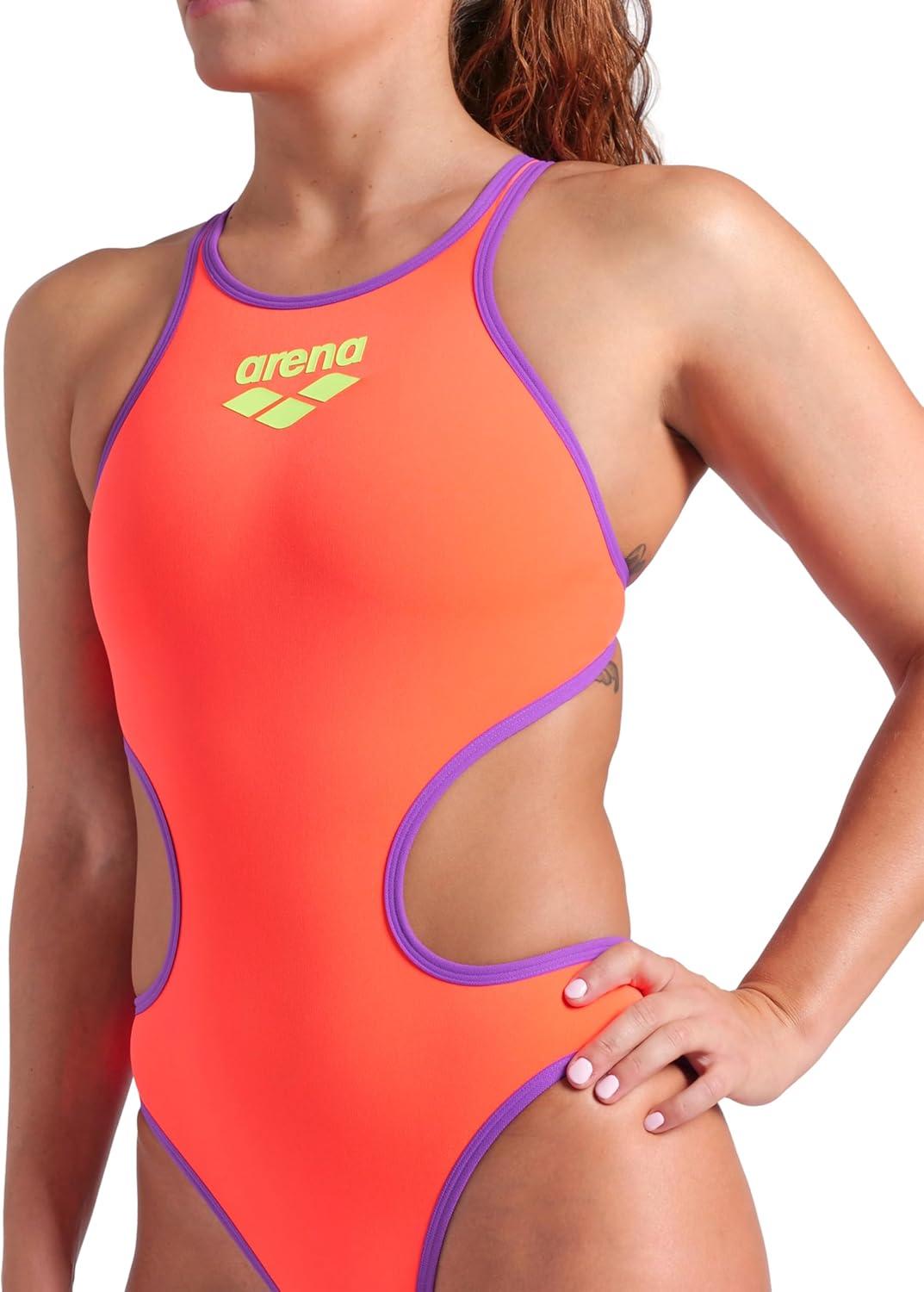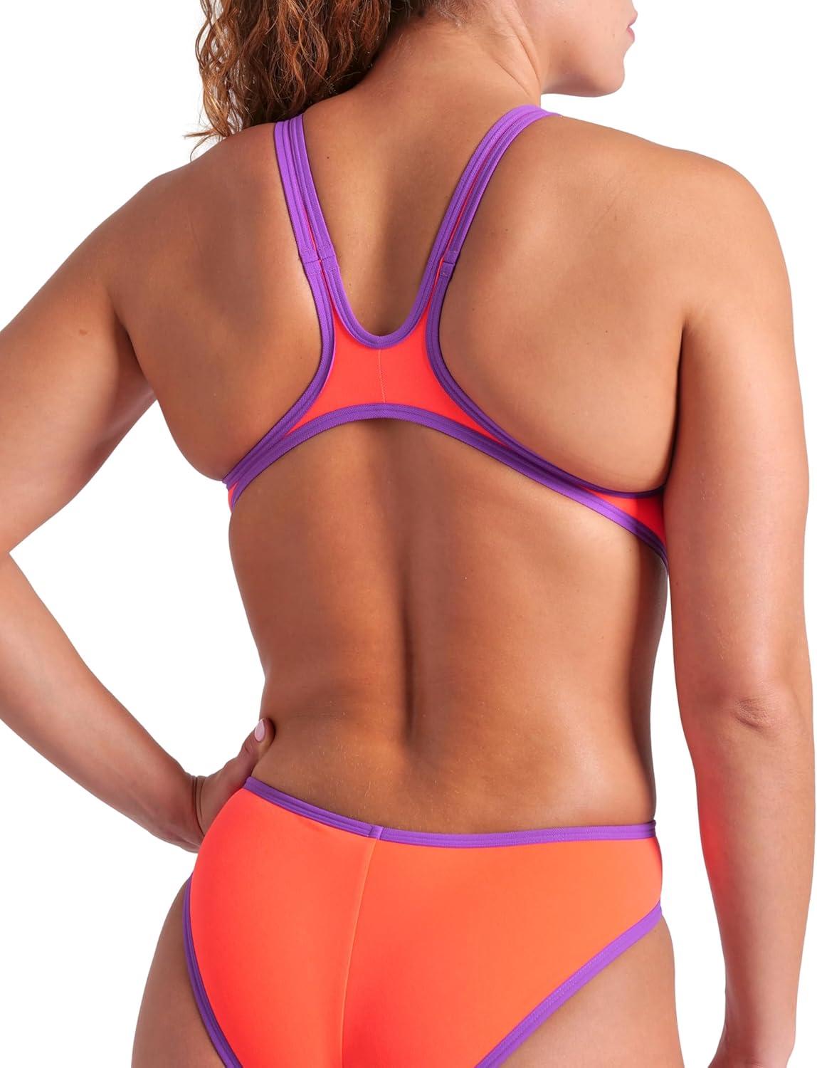 Arena One Big Logo Women’s Swimsuit Tech One Back One Piece Construction MaxLife Training Suit(Bright Coral/Purple)