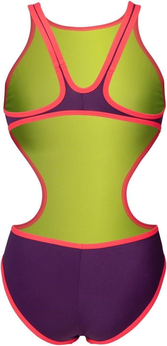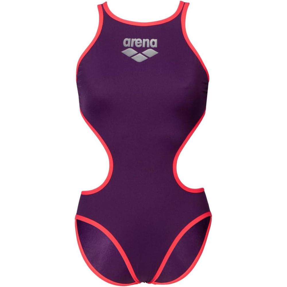 Arena One Big Logo Women’s Swimsuit Tech One Back One Piece Construction MaxLife Training Suit(Plum/Bright Coral)