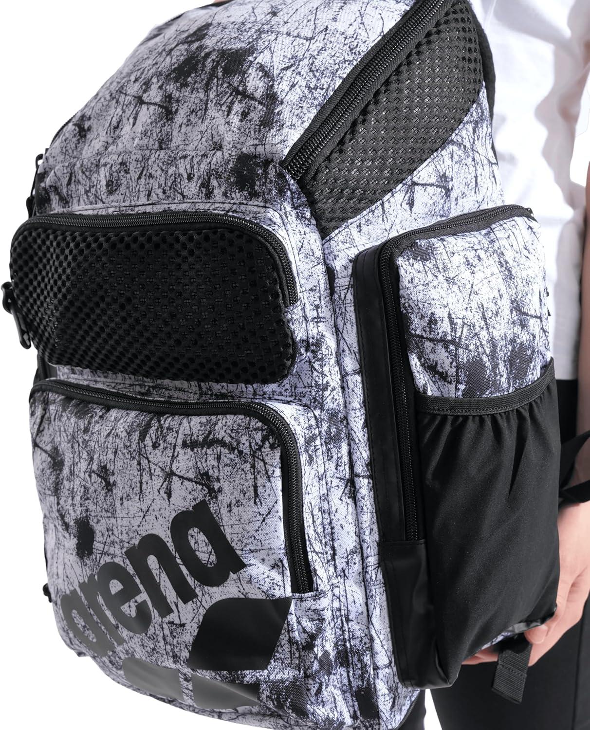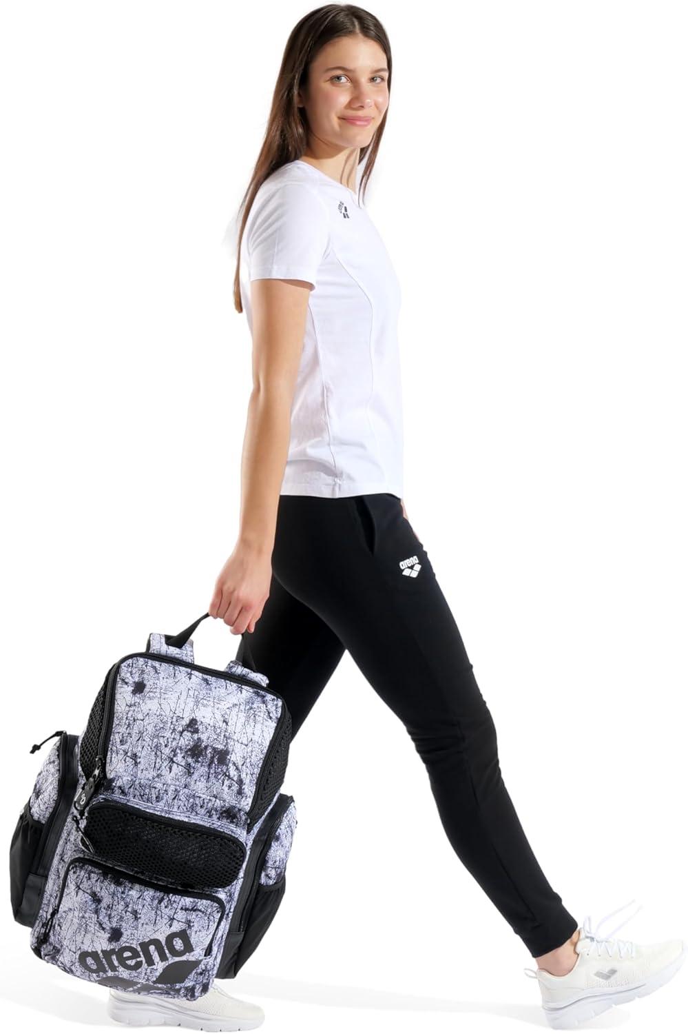 Large and super stylish athletic backpack designed for swimmers with arena’s new wet management system Aquabreathe offers plenty of room and easy access for all your swim training or sports gear