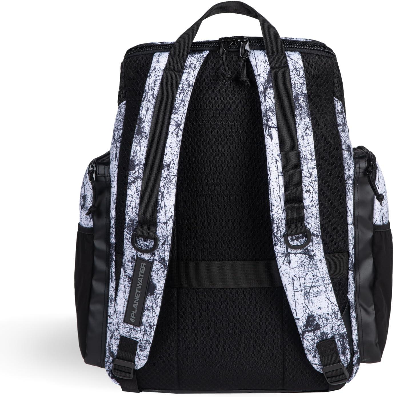 Organize all the stuff you need for your training. The large arena One Go Backpack 45L with a top-loading design makes packing and accessing your belongings easy. The roomy main compartment and four external zipped front pockets offer various storing options. Breathable and watertight inserts are engineered to keep wet and dry items apart. Featuring a smart laptop sleeve and two external bottle pockets. Aquabreathe, arena's new wet management system, combines breathable and water-repellent fabrics to create an advanced ventilation system that keeps water out and your gear dry. The breathable back panel ensures sweat-free transport. Equipped with a practical strap for easy attachment to a suitcase, this backpack is easy to hang with the included carabiner. The water-repellent bottom and main fabric offer protection from moisture and dirt. Dimensions: 19.7 in x 15.7 in x 9.8 in, 45 liters.