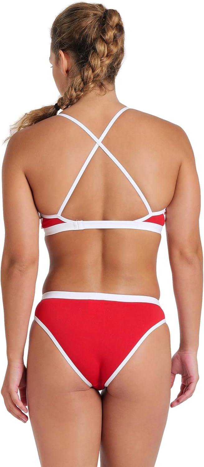Arena Performance Icons Solid Women’s Two-Piece Swimsuit Cross Back MaxLife Bikini Pool Training Suit(Red/White Logo)
