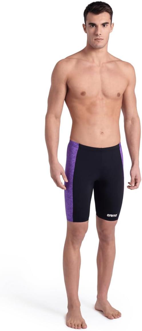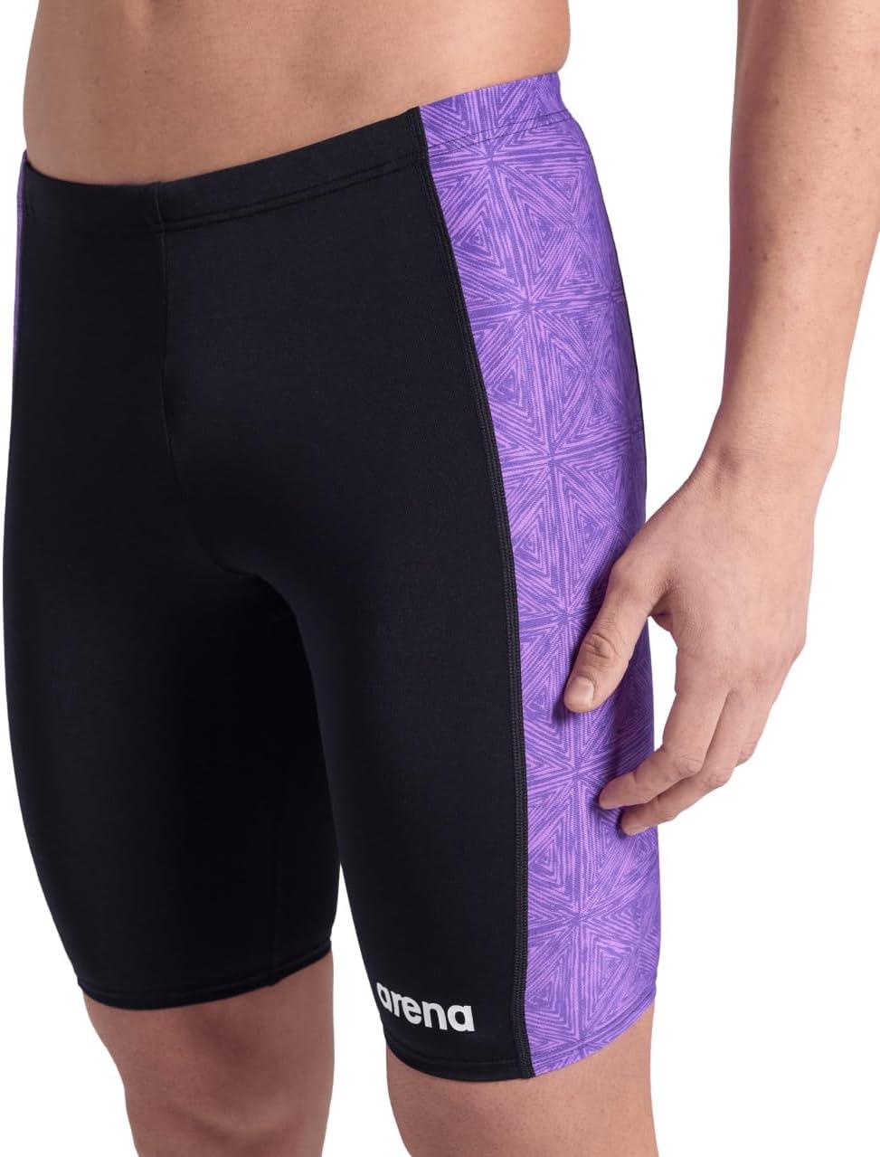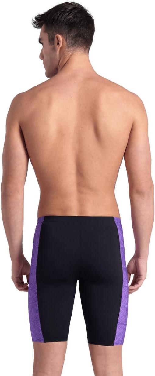 ARENA Performance Men’s Abstract Tiles Swim Jammer Athletic Practice Knee-Length Swimsuit Competitive Training Bathing Suit(Black/Team Purple)